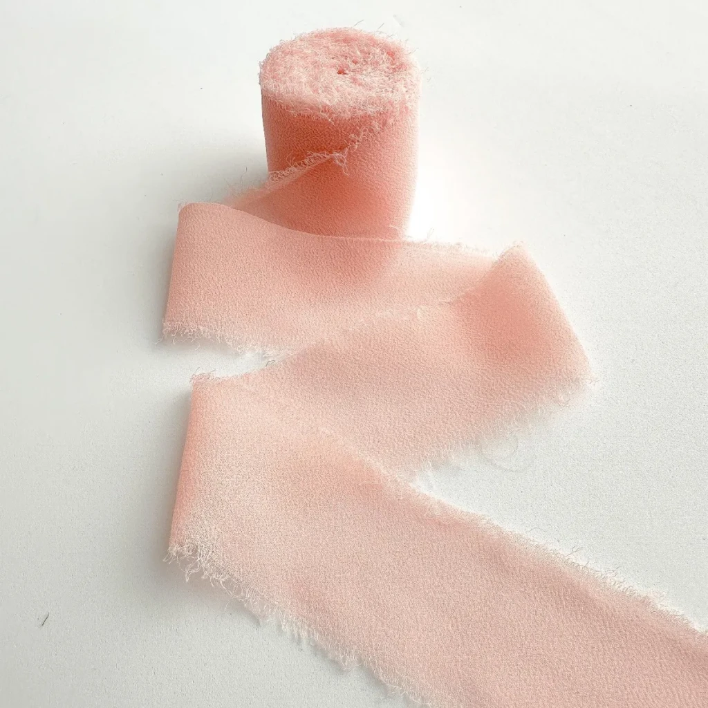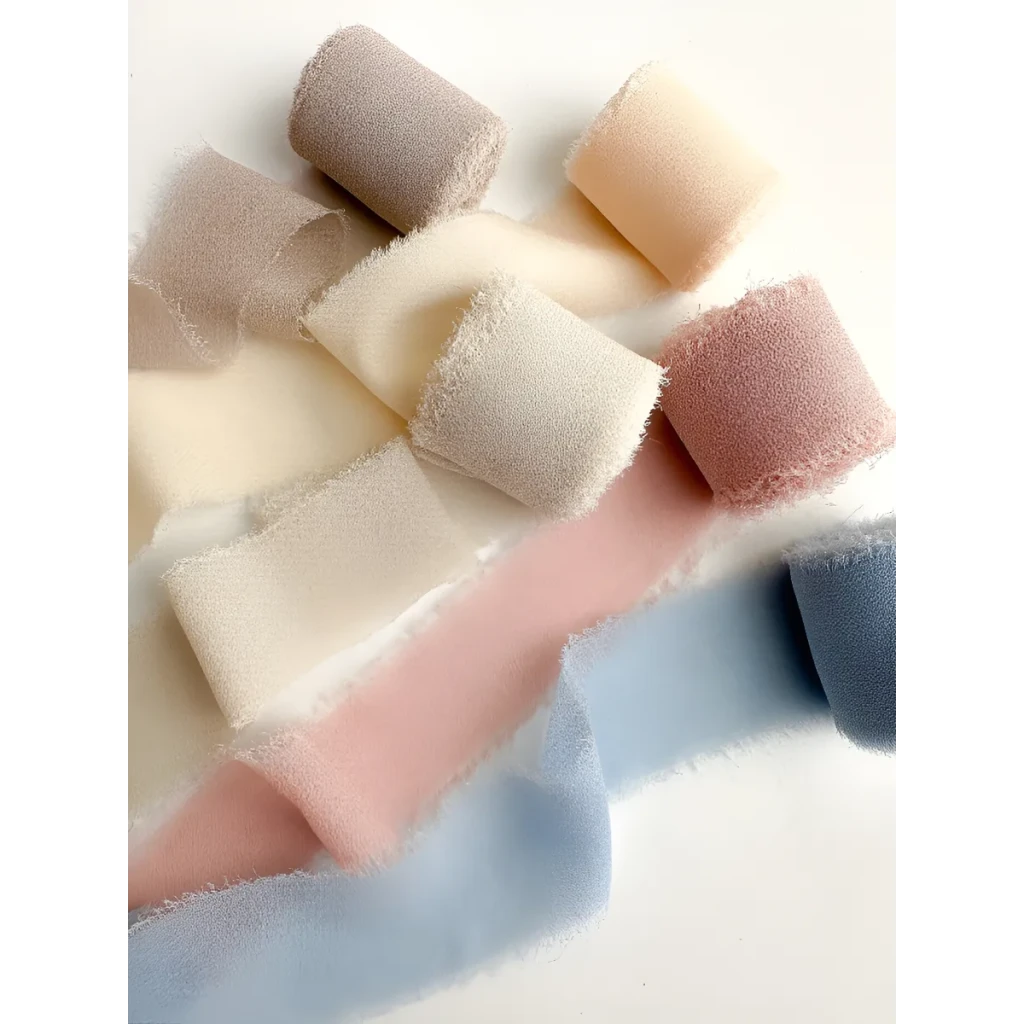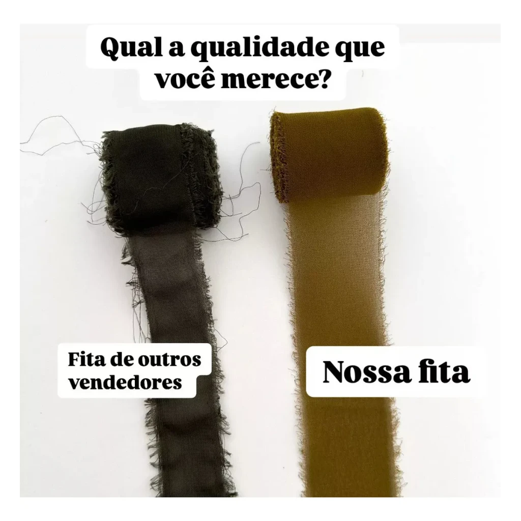 Adicione um toque de elegância ao seu casamento com nossa fita chiffon de seda rústica desfiada, ideal para convites e lembranças.