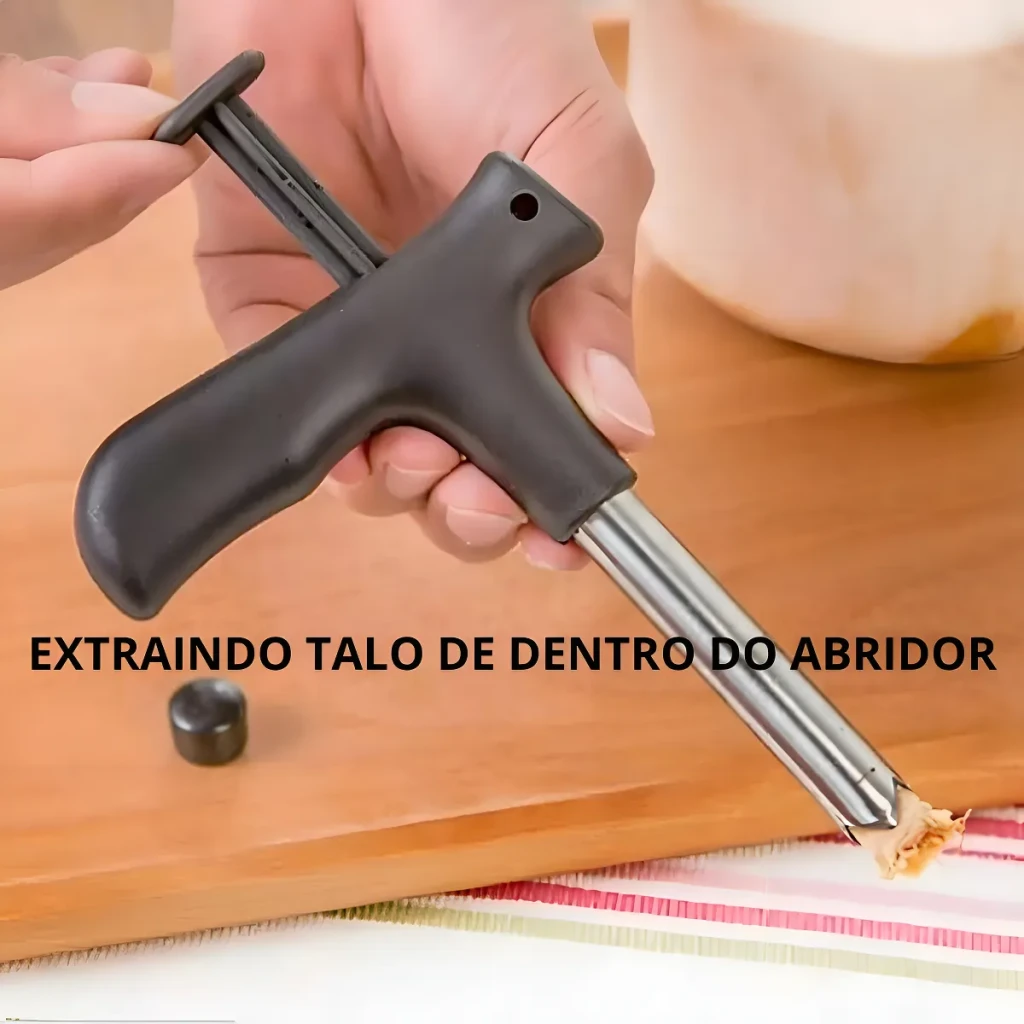Com um design compacto e eficiente, ele garante uma abertura rápida e segura, preservando o frescor da água de coco.