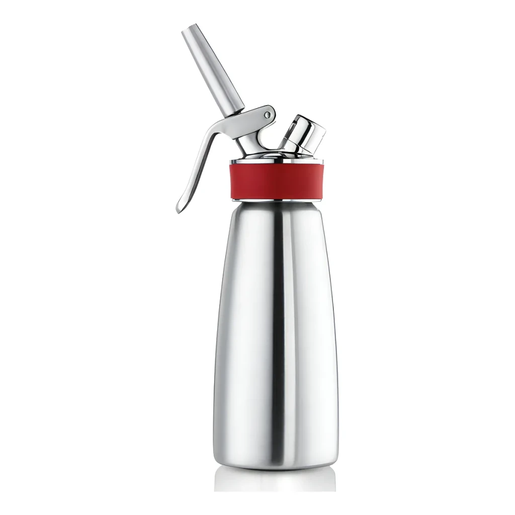Prepare chantilly, mousses e espumas com a Garrafa Isi Sifão Gourmet de 1 litro, ideal para temperaturas quentes e frias.