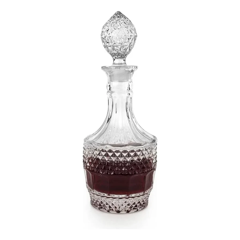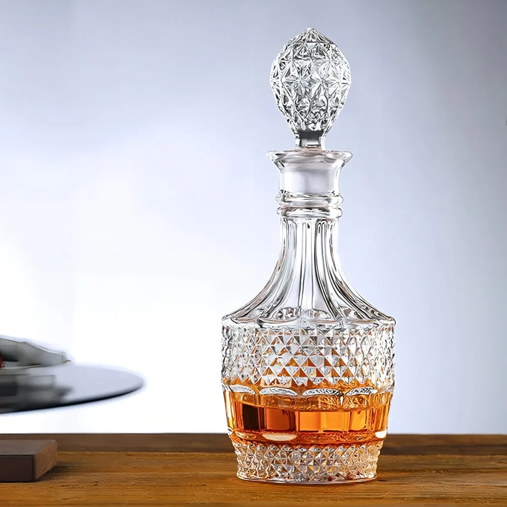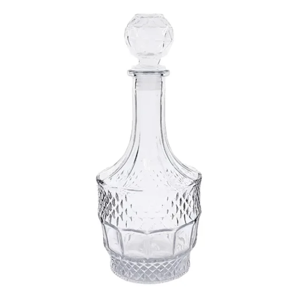 Descubra a sofisticação com esta garrafa de vidro lapidado, perfeita para whisky e outras bebidas destiladas.