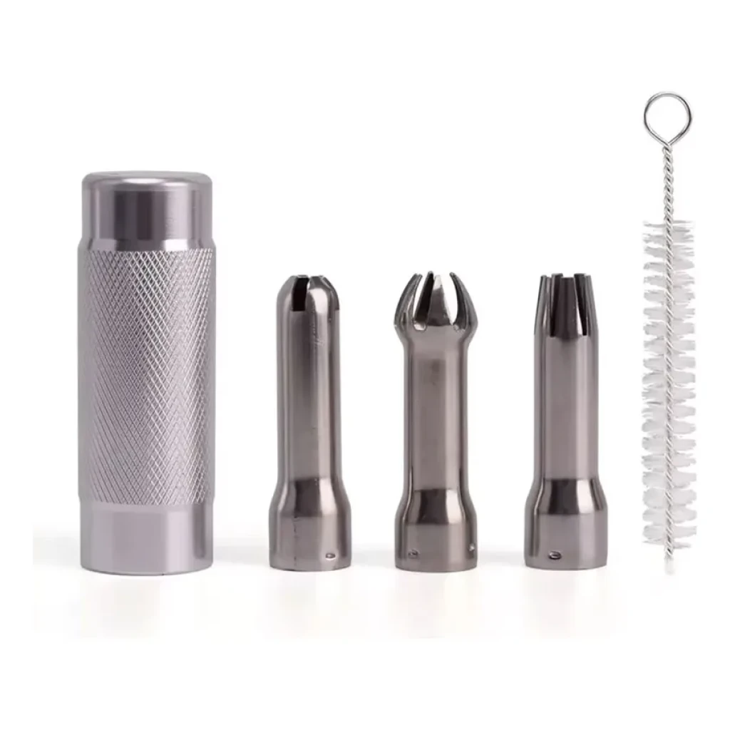 - Bicos de Inox Inclusos: Equipado com 3 bicos de aço inoxidável e escovas de limpeza.