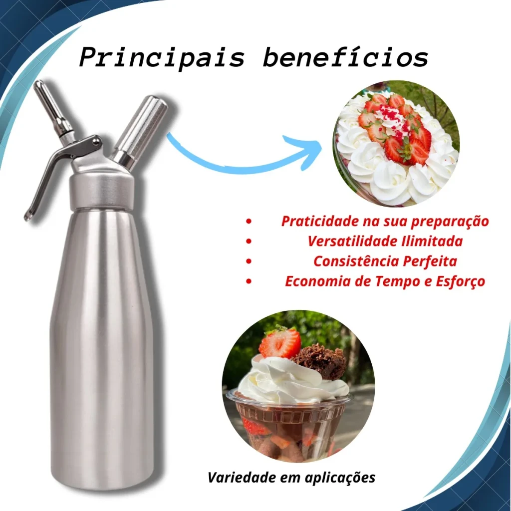 - Praticidade na Preparação: Prepare chantilly, cremes aerados e espumas de forma simples.