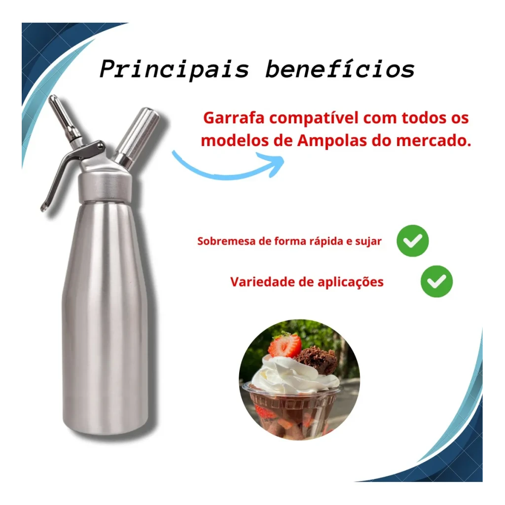 Transforme suas receitas com a Garrafa Sifão Inox Profissional de 1L. Ideal para preparar chantilly, mousses e muito mais, oferecendo praticidade e qualidade.