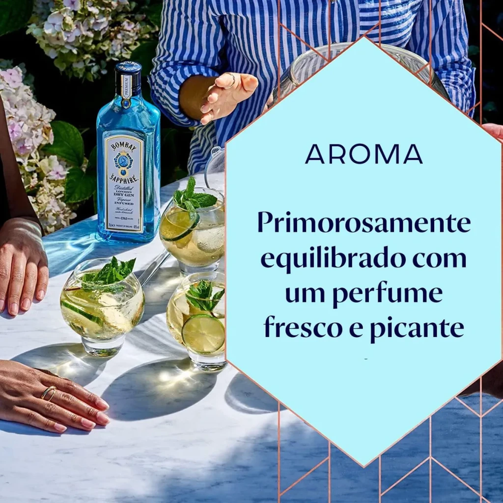 O gin Bombay Sapphire é um convite à criatividade. Com sua infusão à vapor, oferece um perfil de sabor versátil, ideal para criar drinks únicos e deliciosos.