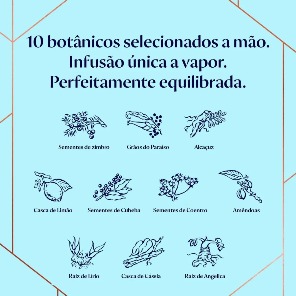 Com uma produção consciente, cada gota deste gin contém 10 botânicos colhidos de maneira sustentável ao redor do mundo, garantindo um produto de alta qualidade e respeito ambiental.