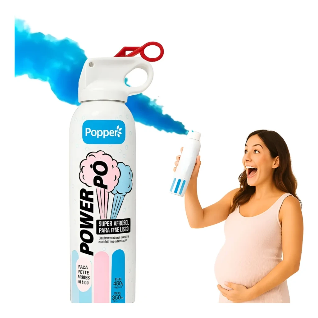 Surpreenda seus convidados com o Jato em Pó para Chá Revelação, uma forma divertida e emocionante de revelar o sexo do bebê!