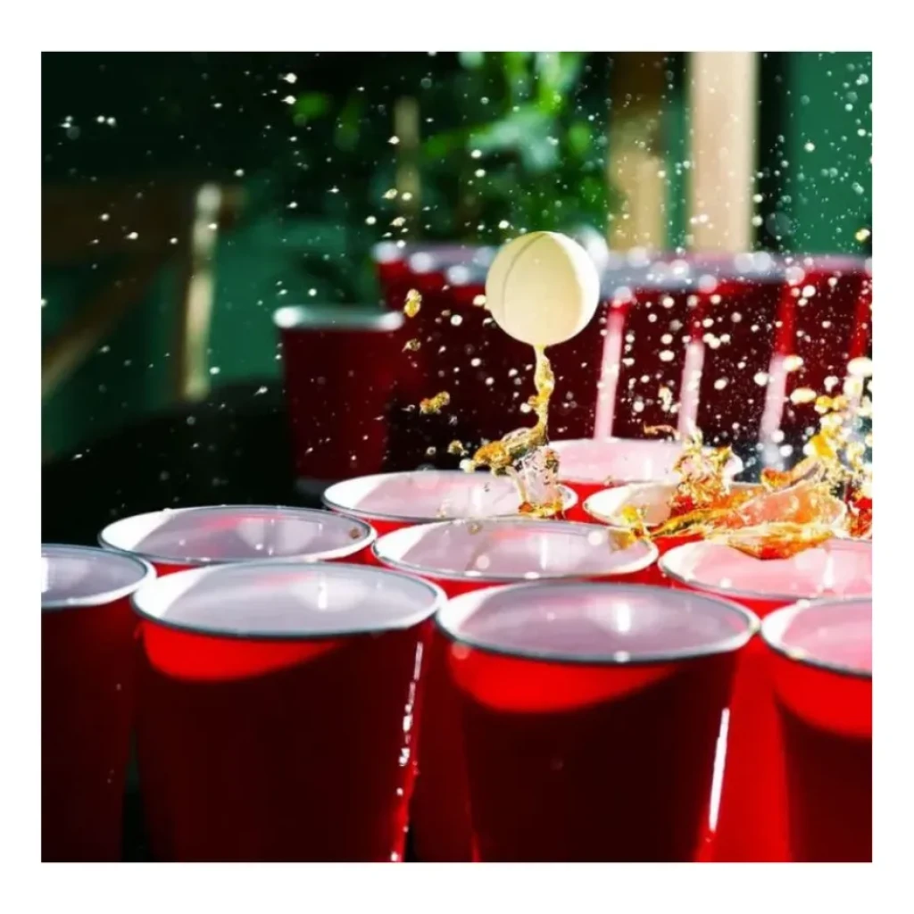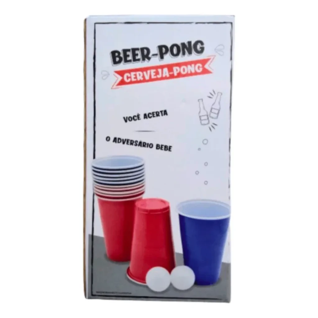 O Beer Pong é um jogo de festa que promete animar qualquer evento, seja em casa ou em festas. Com copos dispostos em formato de triângulo, as duplas tentam acertar a bolinha nos copos da equipe adversária, criando uma competição divertida e cheia de estratégias.