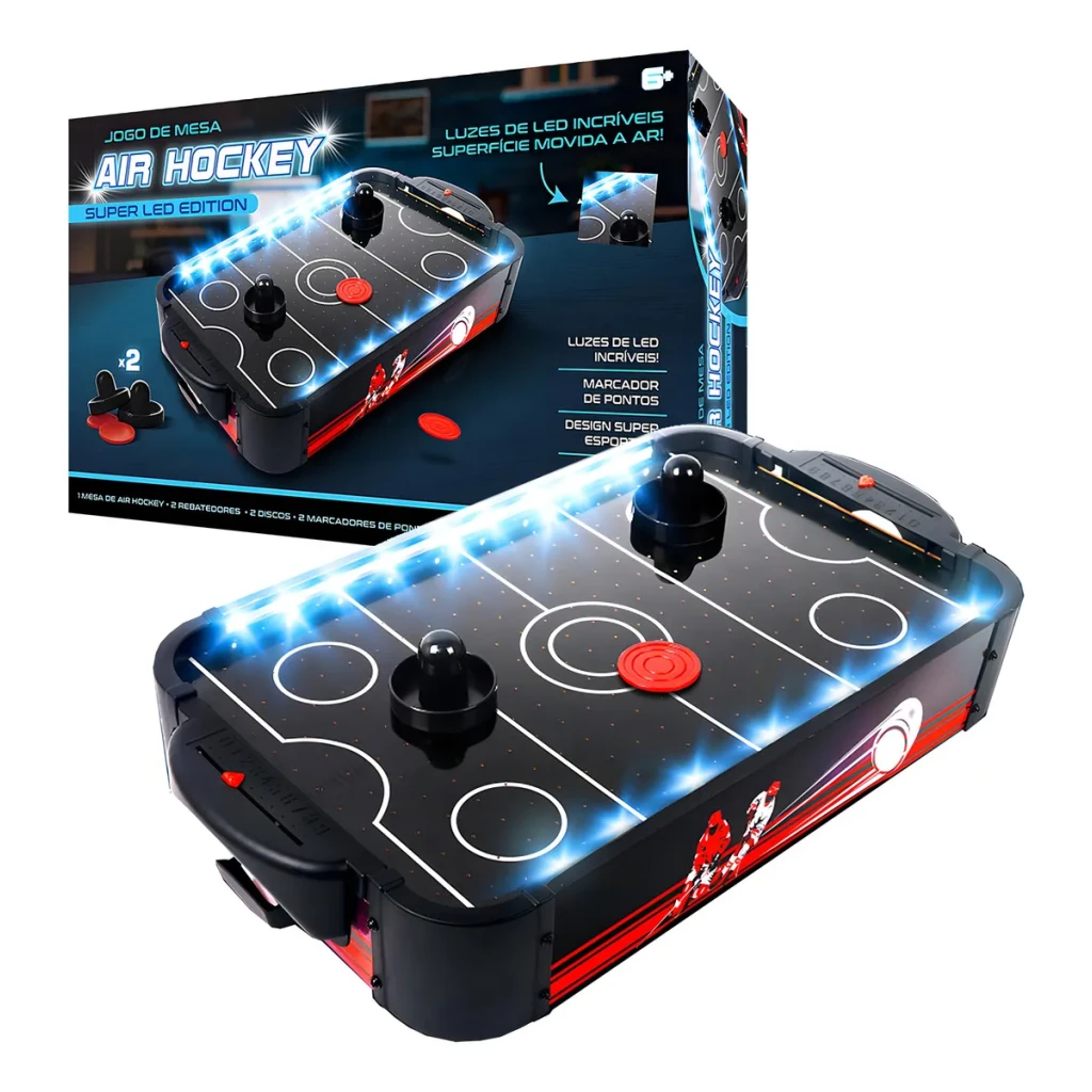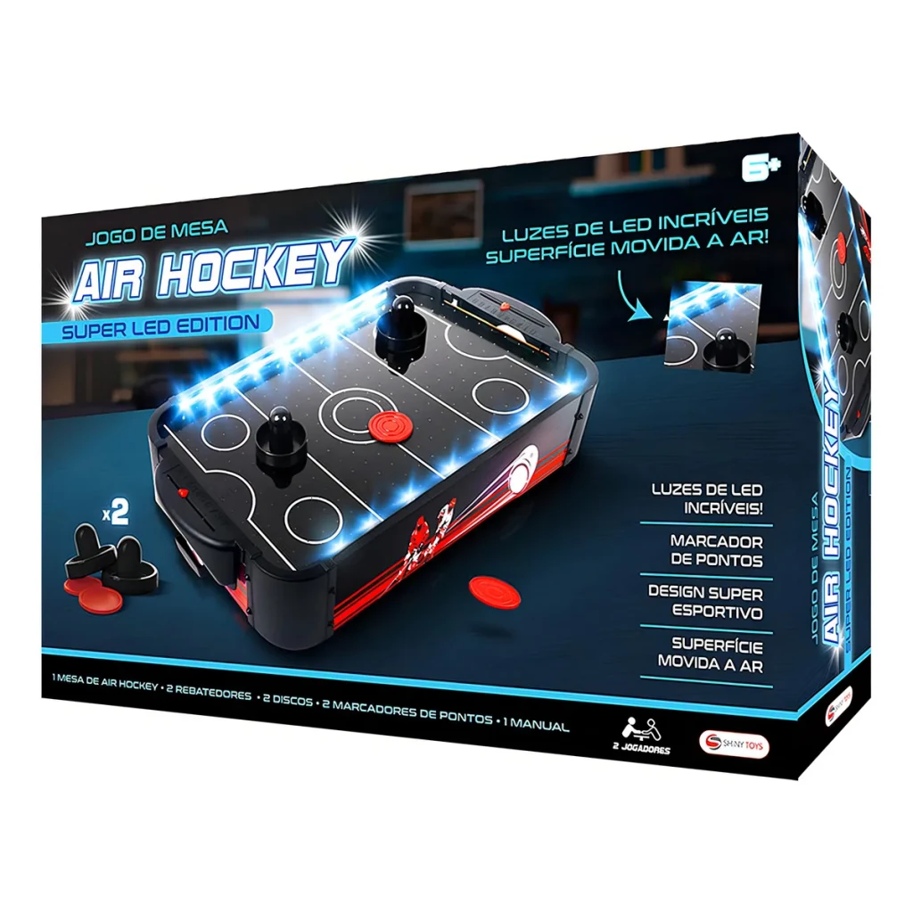 O Jogo de Mesa Air Hockey de Madeira com Iluminação LED da Shiny Toys é a escolha perfeita para quem busca diversão e interação em família. Com um design robusto e sofisticado, este jogo não é apenas uma opção de entretenimento, mas também uma peça decorativa incrível.
