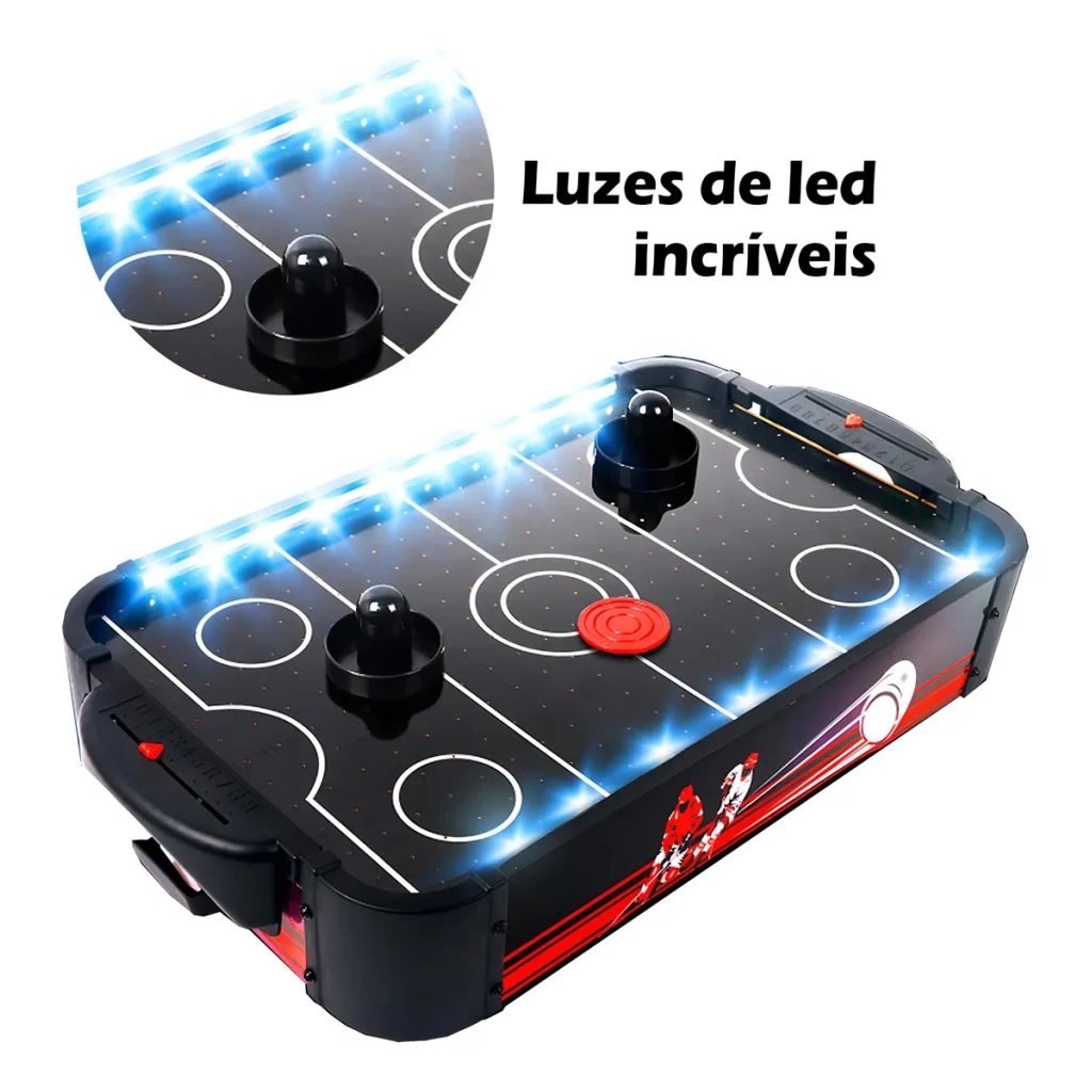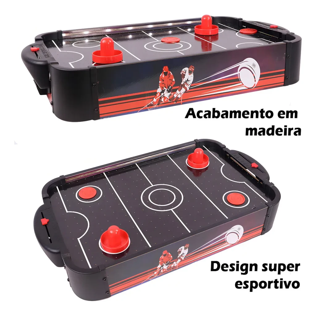 Jogo de Mesa Air Hockey de Madeira com Iluminação LED – Shiny Toys
