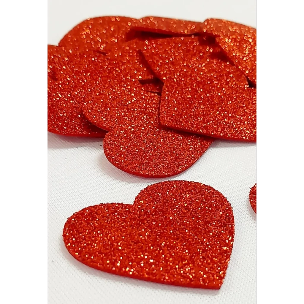 O Kit contém 1.000 apliques em formato de coração, confeccionados em EVA com acabamento em glíter. Ideal para dar um toque especial em suas criações artesanais.