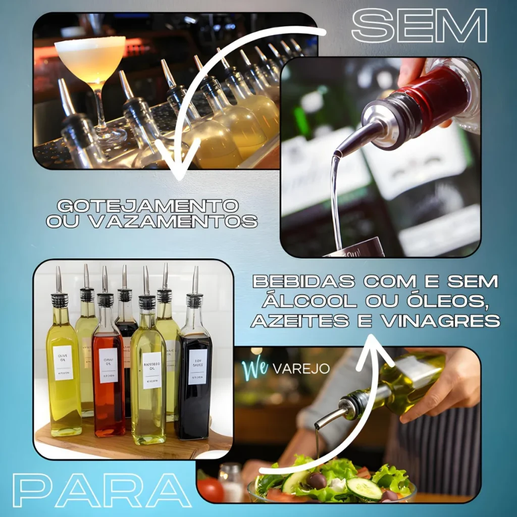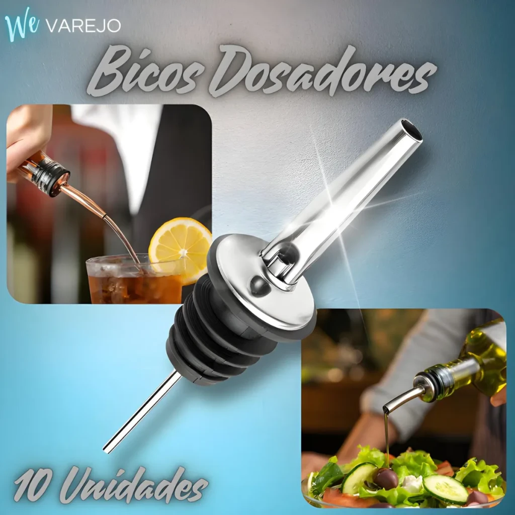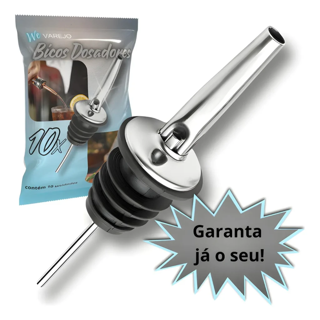 Transforme sua experiência de servir bebidas com o nosso kit de 10 bicos dosadores em aço inoxidável. Compatível com diversos tipos de garrafas, oferece controle preciso de fluxo, evitando desperdícios e respingos.