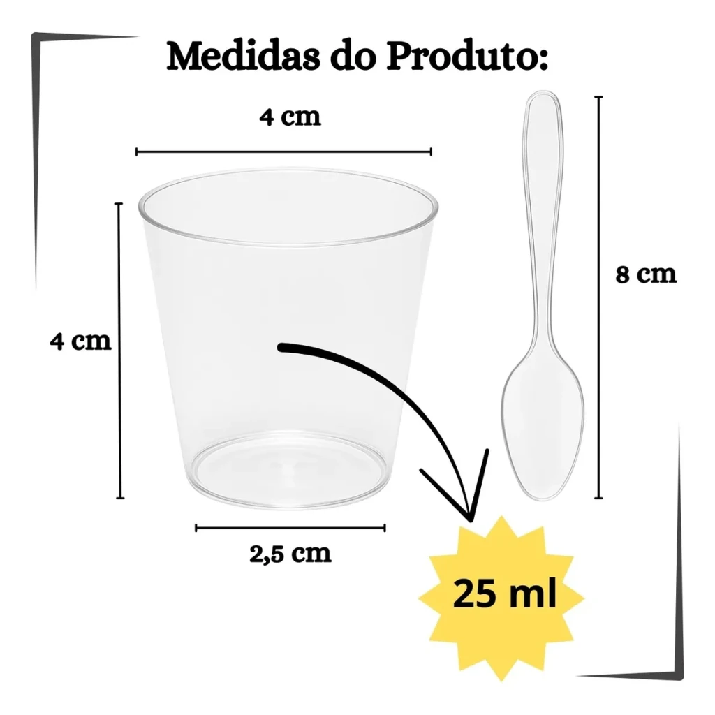 - 100 unidades de copinhos de 25ml