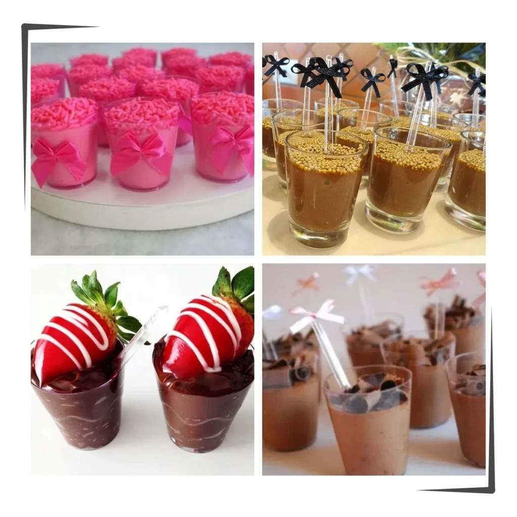 - Mousses, mini pudins, geleias, pavês