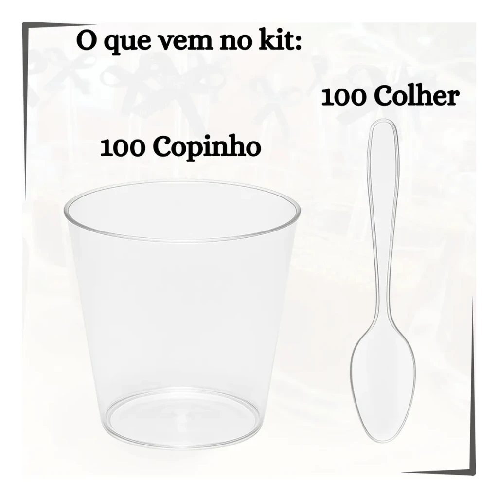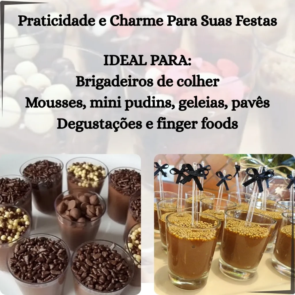 Com 100 copinhos e 100 colheres inclusas, você poderá servir brigadeiros, mousses e muito mais, tudo com um visual sofisticado e atraente.