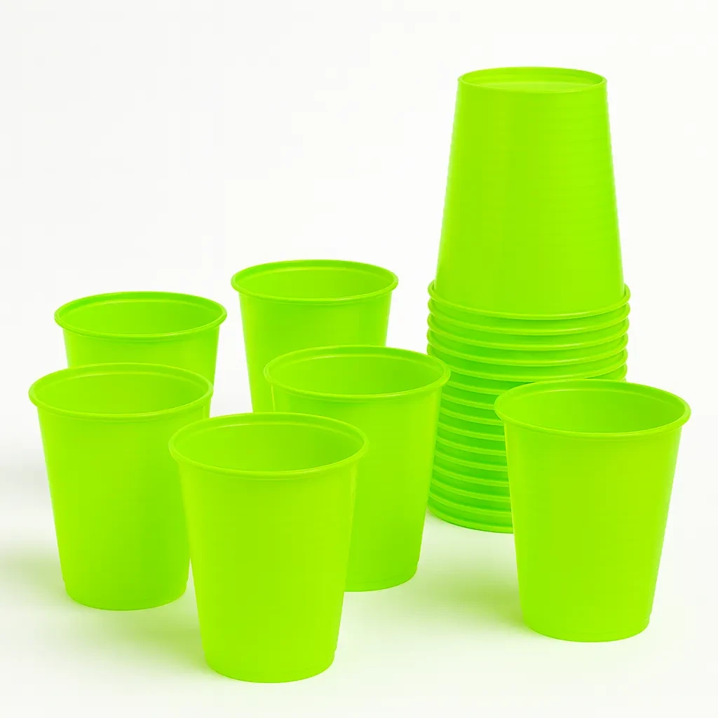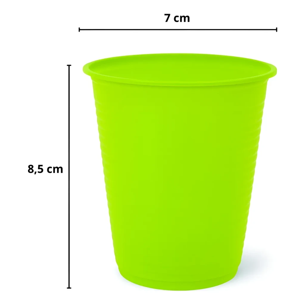O Kit com 100 Copos Descartáveis de 200ml na cor Verde Claro é perfeito para dar um toque especial em suas festas e eventos.