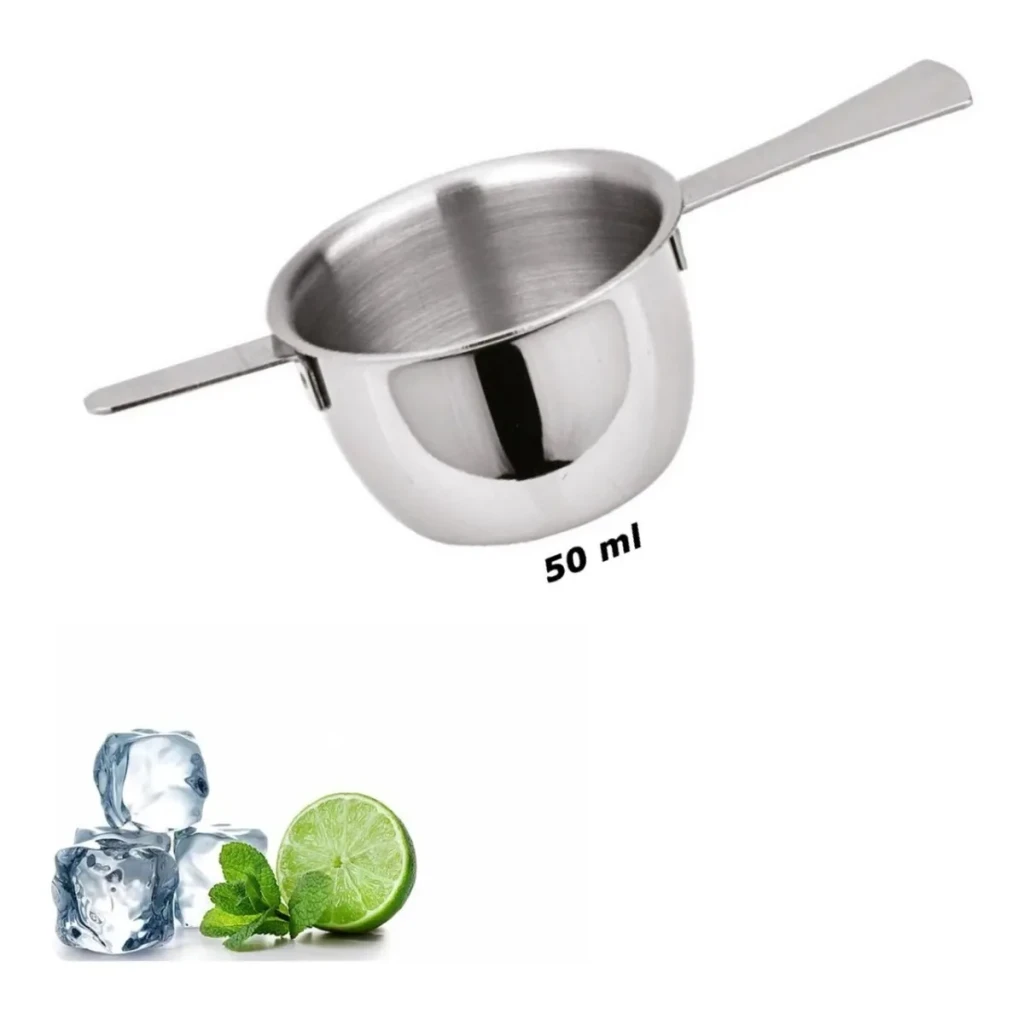 Este dosador possui duas marcações no lado externo: 50ml em um lado e 25ml no outro. Ideal para padronizar receitas e controlar o estoque de bebidas em qualquer ambiente de bar.