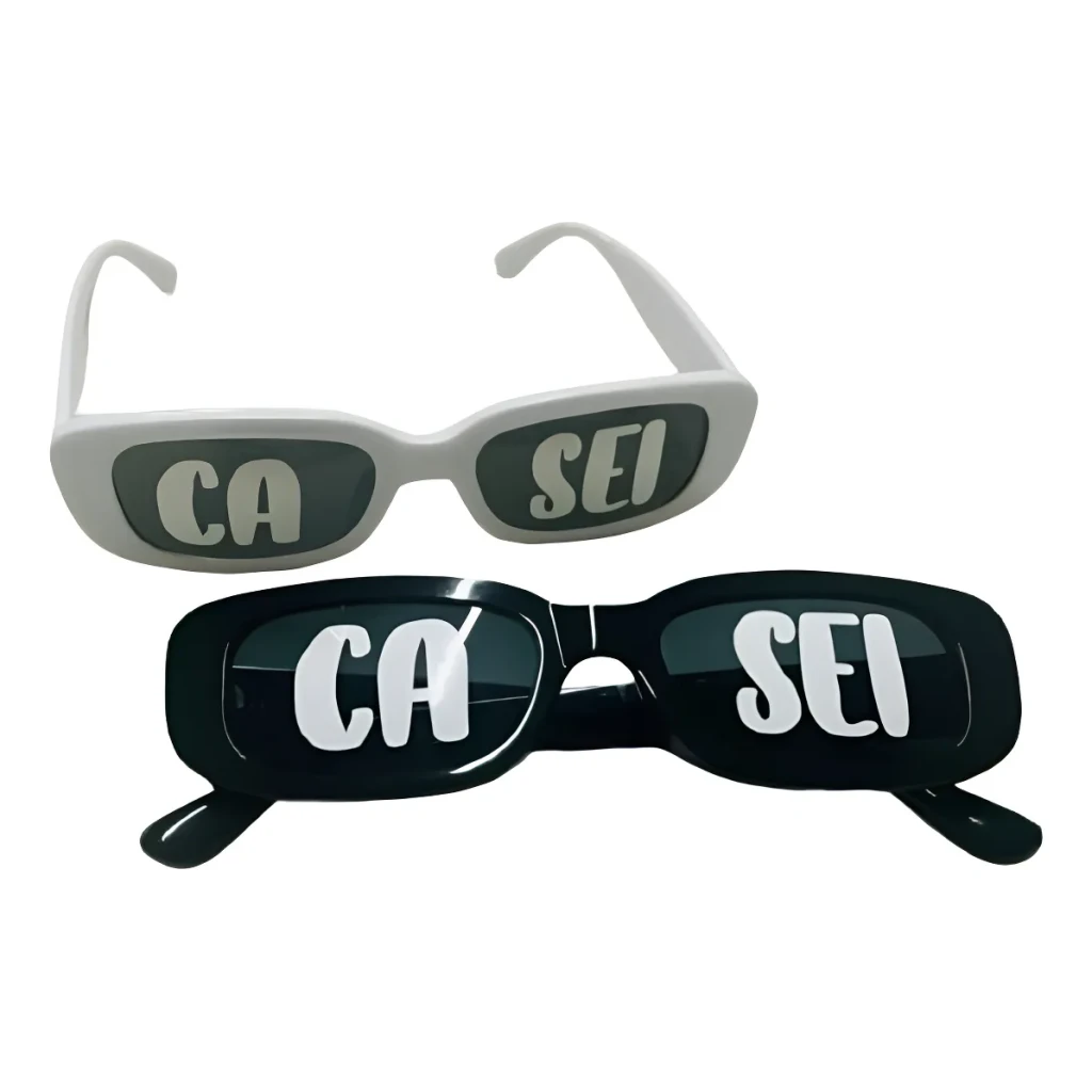 Este kit de óculos é a escolha perfeita para quem quer se destacar em festas de casamento. Com a frase “CASEI” estampada, eles são ideais para registrar momentos especiais.