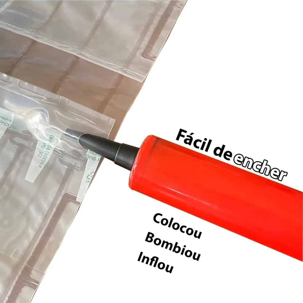 Além de garantir proteção contra impactos, umidade e variações de temperatura, o produto é inflável e pode ser usado dentro de caixas de papelão, malas ou de forma independente.