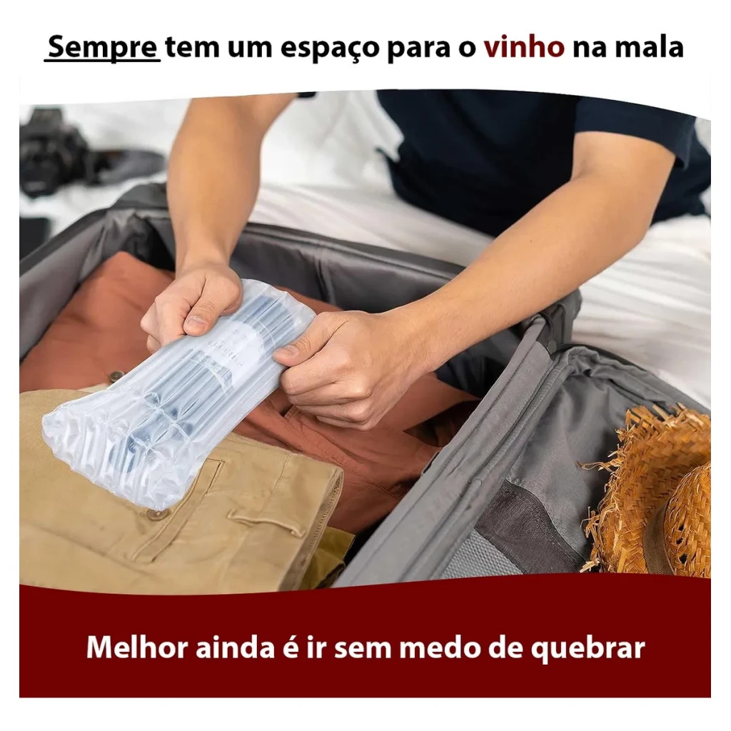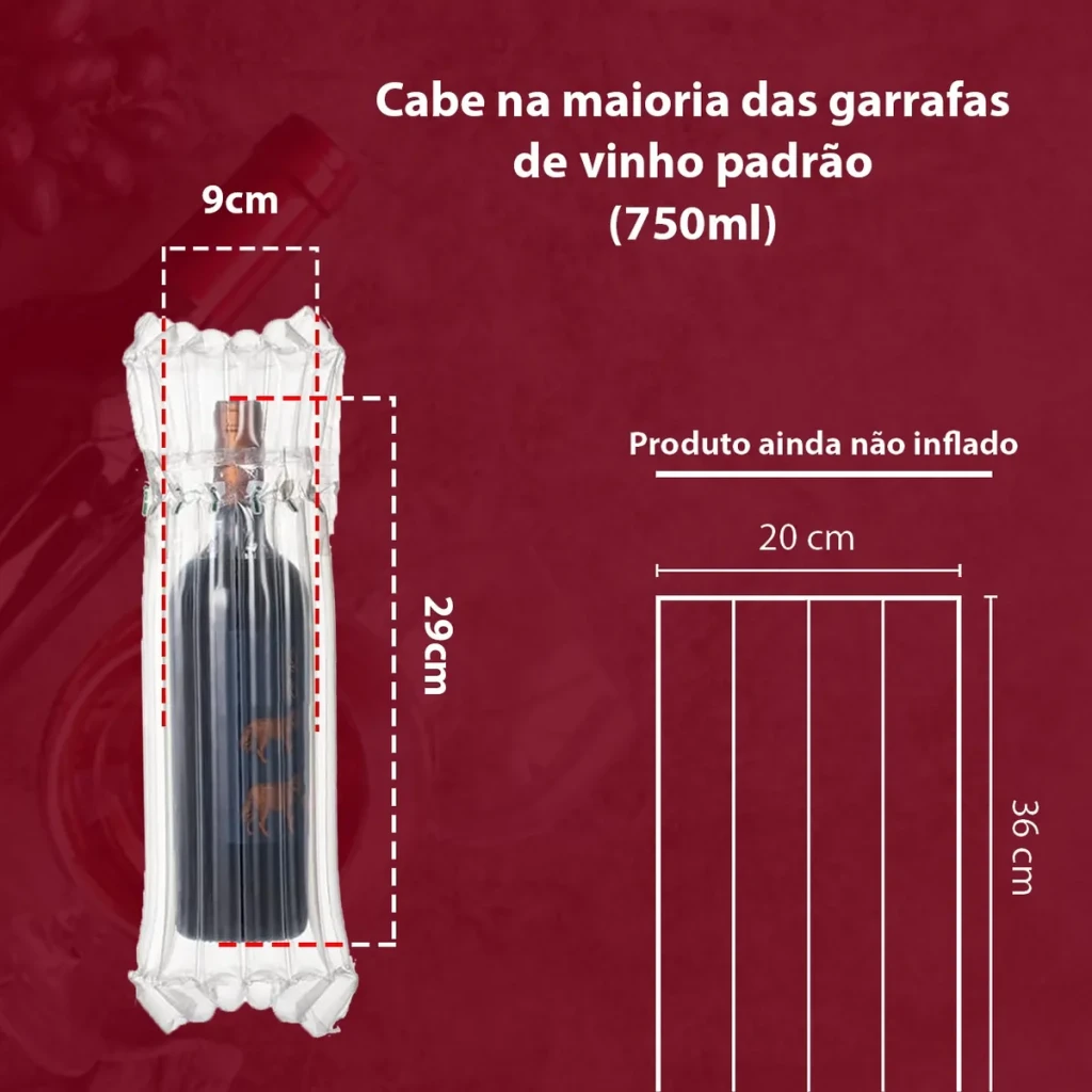 Proteja suas garrafas de vinho, cerveja ou whisky com o nosso kit de 32 protetores infláveis. Inclui bomba de enchimento, garantindo segurança e praticidade no transporte.