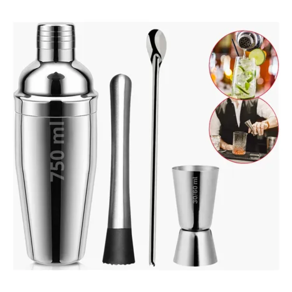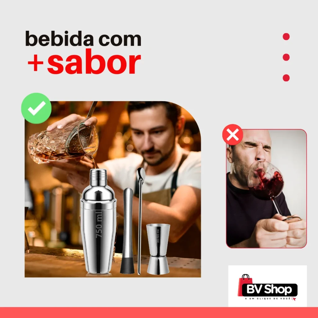 Transforme suas reuniões e happy hours em momentos inesquecíveis com o nosso Kit Bar Completo. Perfeito para amadores e profissionais, este conjunto em aço inoxidável é elegante, resistente e ideal para preparar drinks de qualidade.