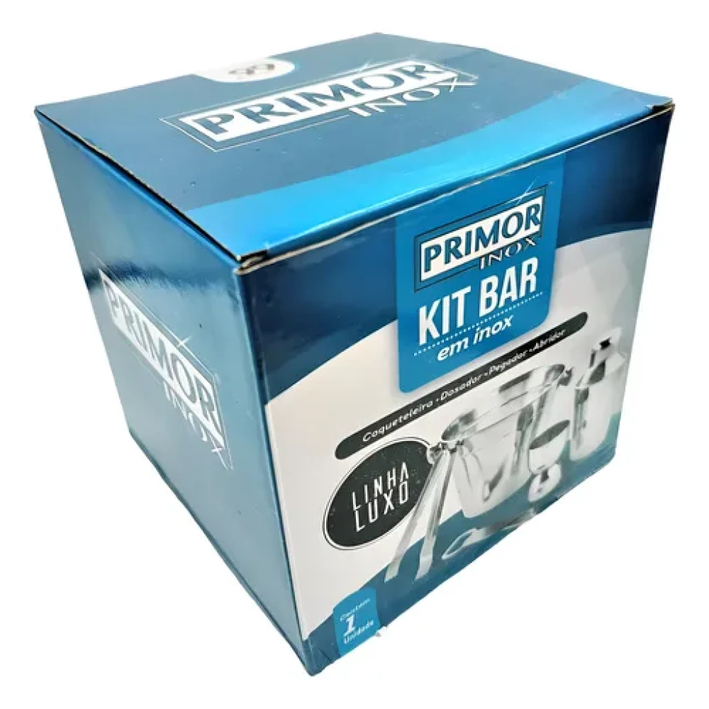 Transforme sua casa em um bar sofisticado com o Kit Bar Completo de 5 peças em inox. Ideal para amantes da coquetelaria, oferece elegância e praticidade.