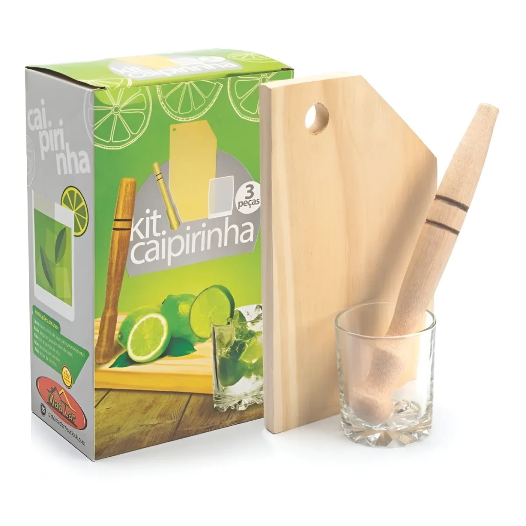 Prepare a caipirinha perfeita com este kit completo de 3 peças, incluindo um copo de vidro, mini tábua e socador. Ideal para quem aprecia sabores autênticos.