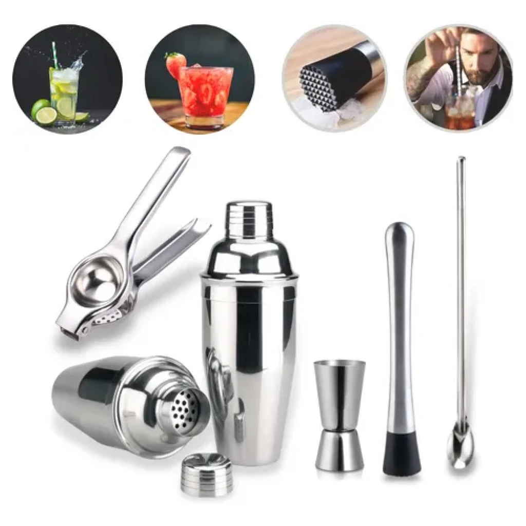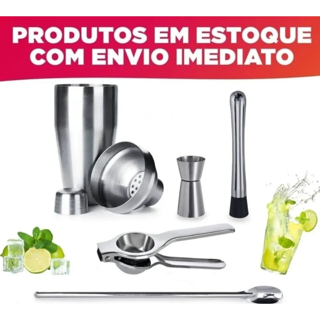 Composto por coqueteleira, socador e outros acessórios em inox, este kit é perfeito tanto para bartenders profissionais quanto para amantes de drinks caseiros.