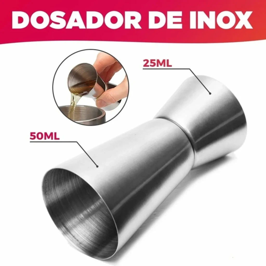 - Coqueteleira em Inox 500ML: Design clássico e funcional, com boca filtrante para facilitar a preparação de drinks.