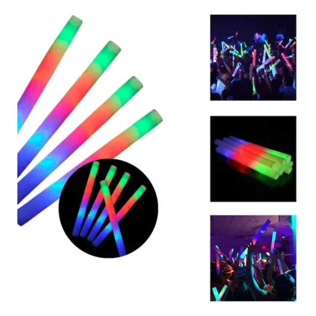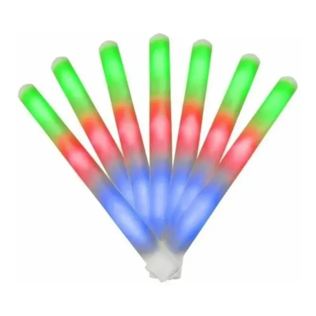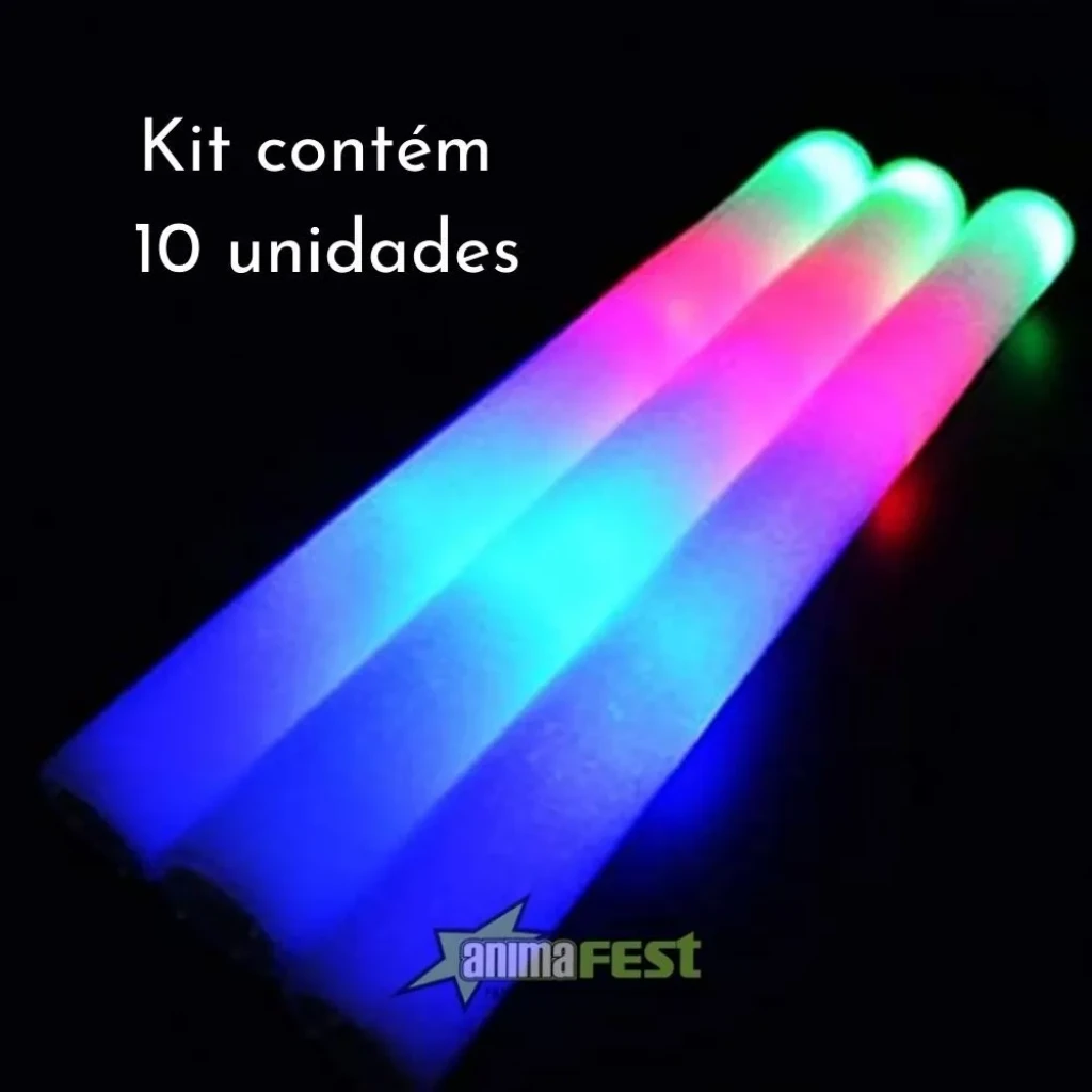 Transforme sua festa com o Kit de 10 Bastões LED Neon em espuma. Perfeito para adicionar brilho e diversão ao seu evento!