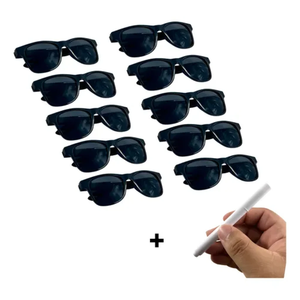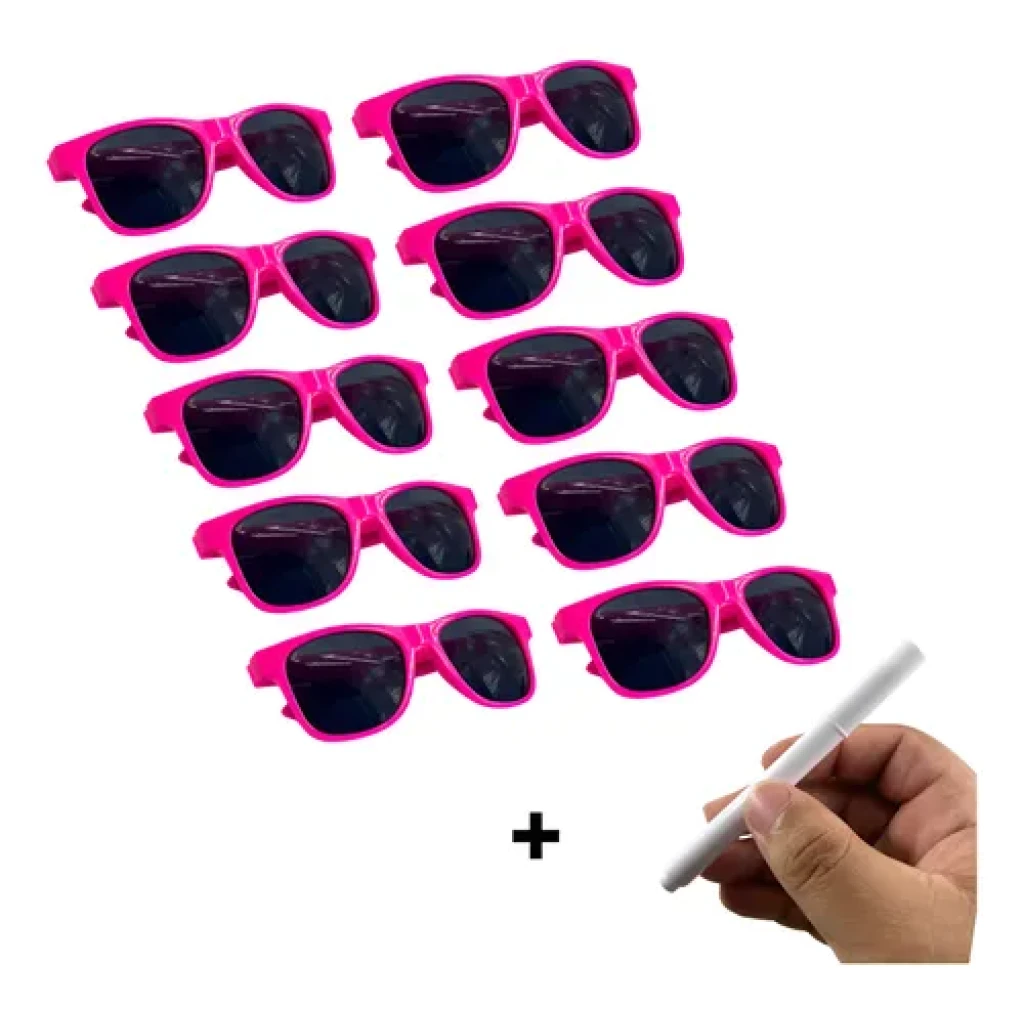 Transforme suas festas e eventos com o nosso kit de 10 óculos coloridos, perfeitos para qualquer ocasião. Inclui também uma caneta giz líquido para personalização!