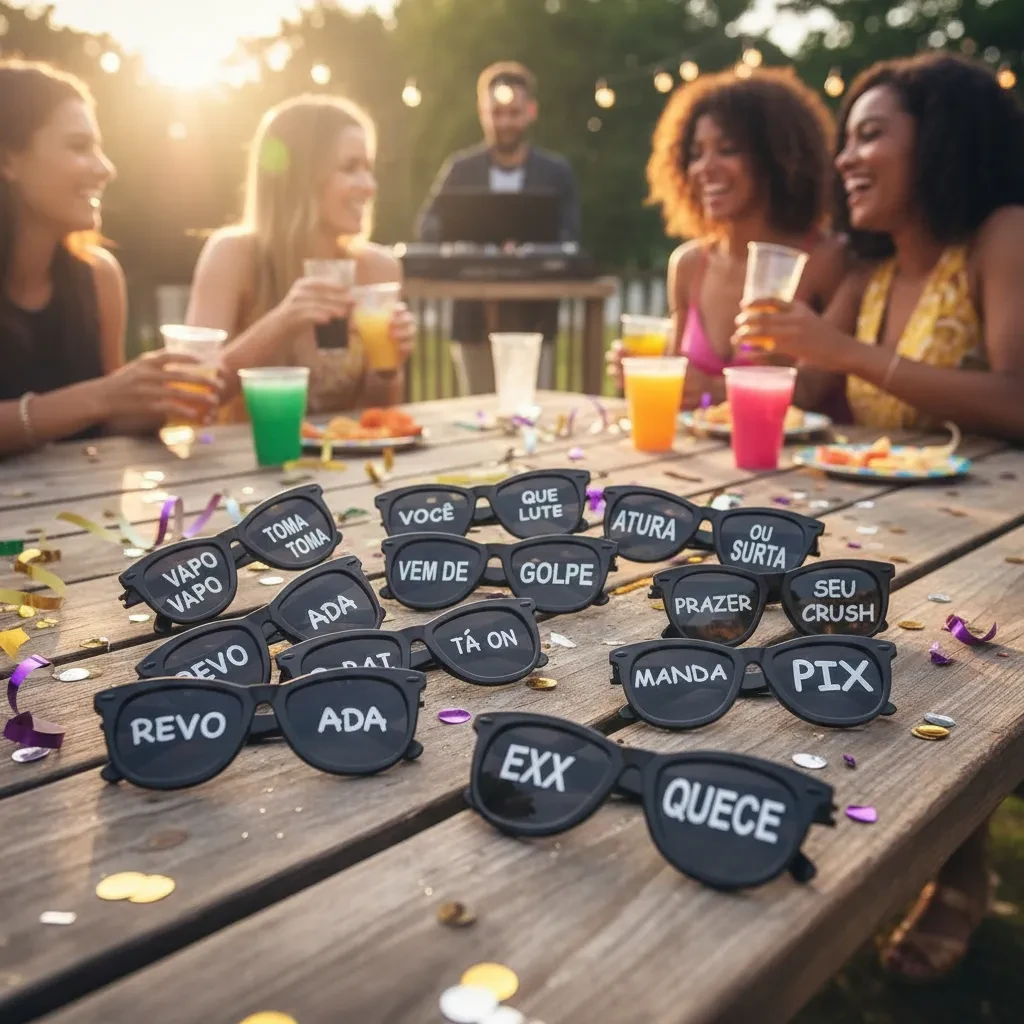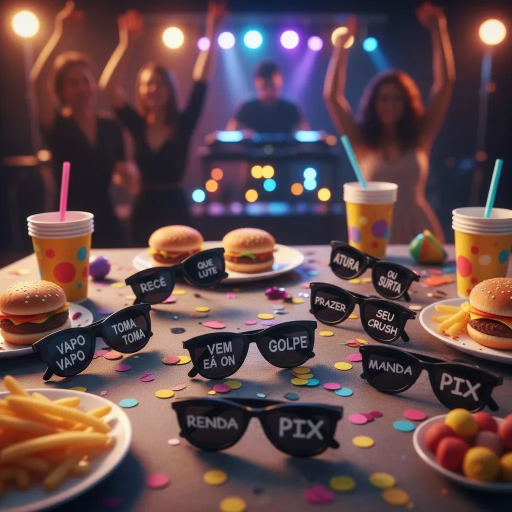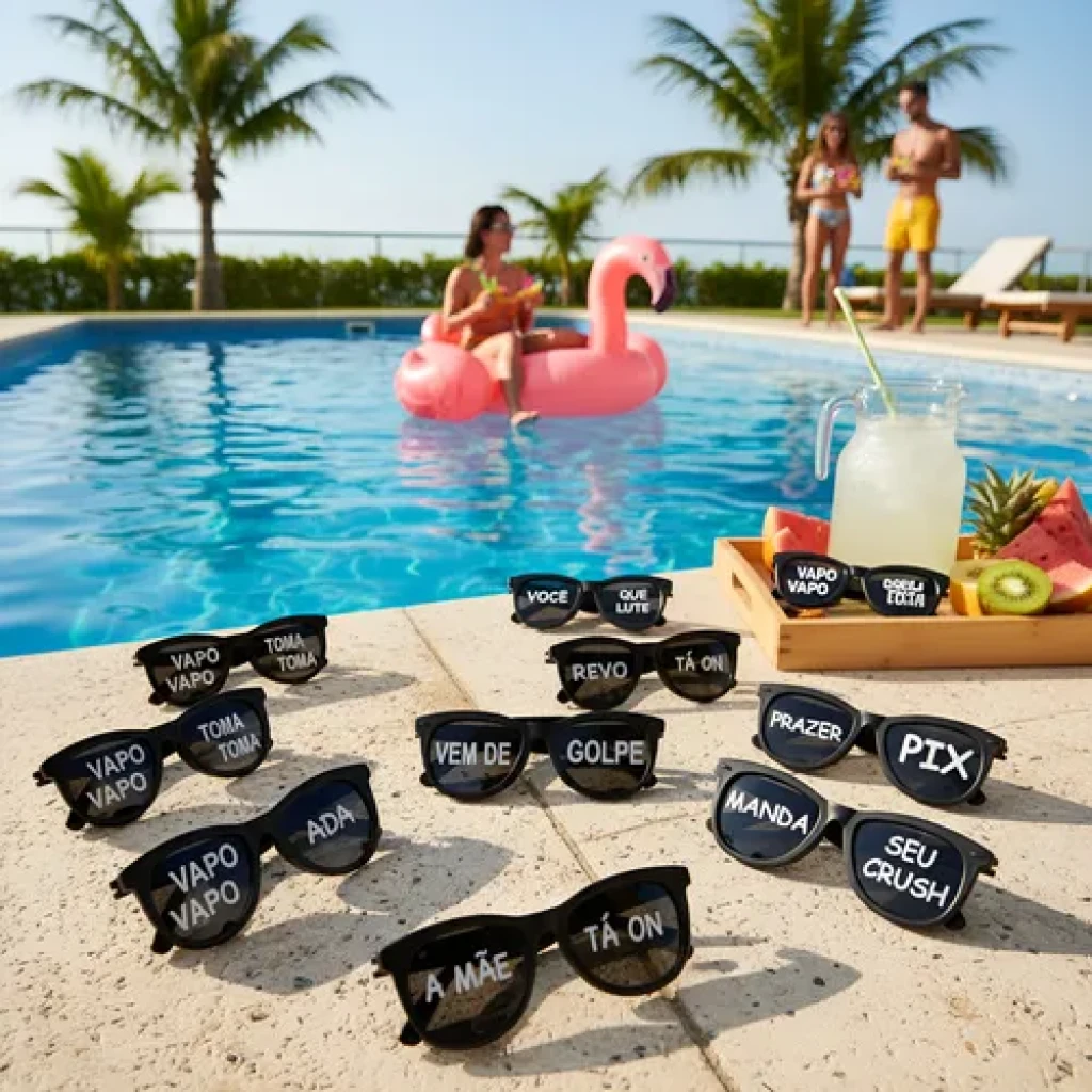 Os óculos são sortidos e apresentam frases fixas, garantindo um toque especial e descolado. Não aceitamos personalizações.