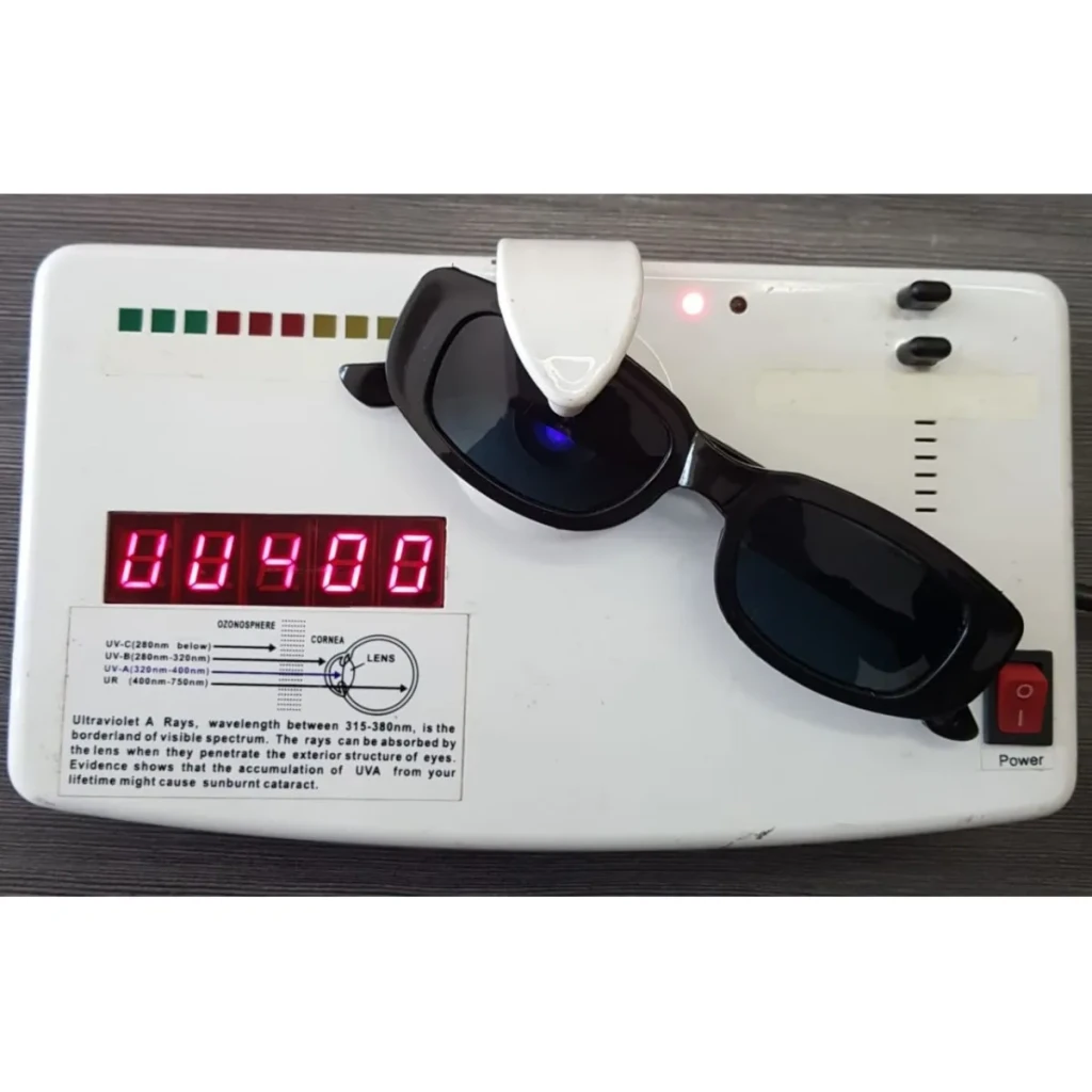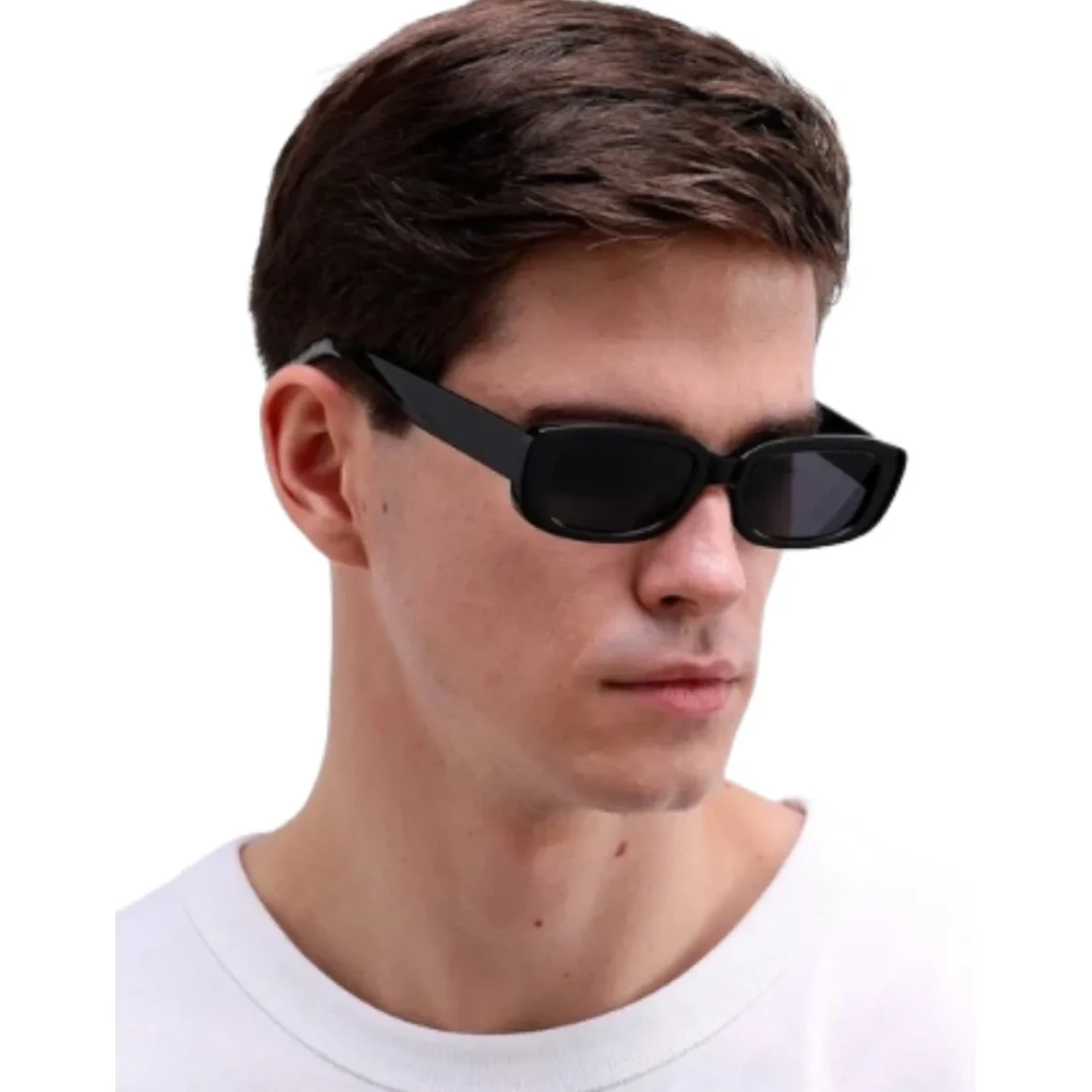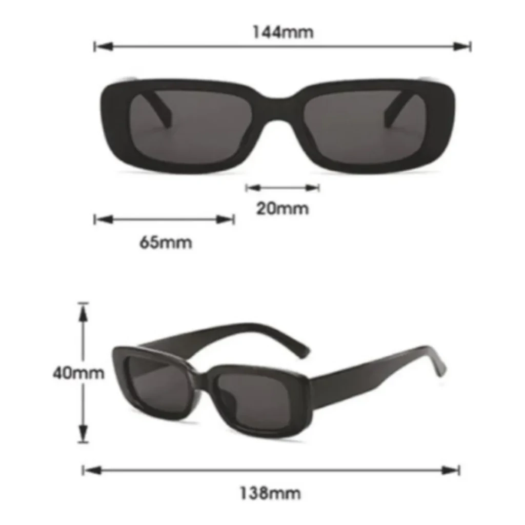 Os óculos são feitos de resina plástica e acetato, materiais leves e duráveis. Cada par vem embalado individualmente em saquinhos plásticos transparentes, garantindo segurança e proteção durante o transporte.