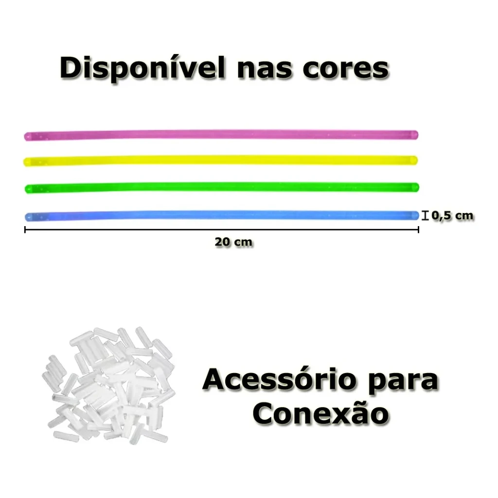 Este kit contém 100 pulseiras neon que iluminam suas festas e garantem que todos se divirtam com muito estilo.