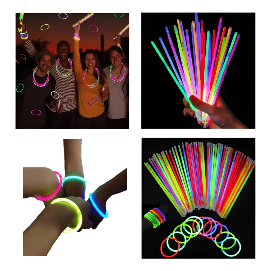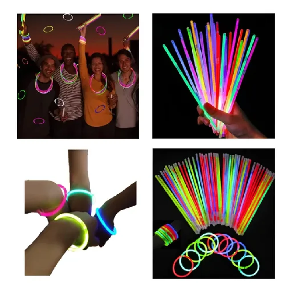 Transforme suas festas em momentos inesquecíveis com nosso Kit com 100 Pulseiras Neon LED Fluorescentes. Ideal para baladas, festas e eventos temáticos!