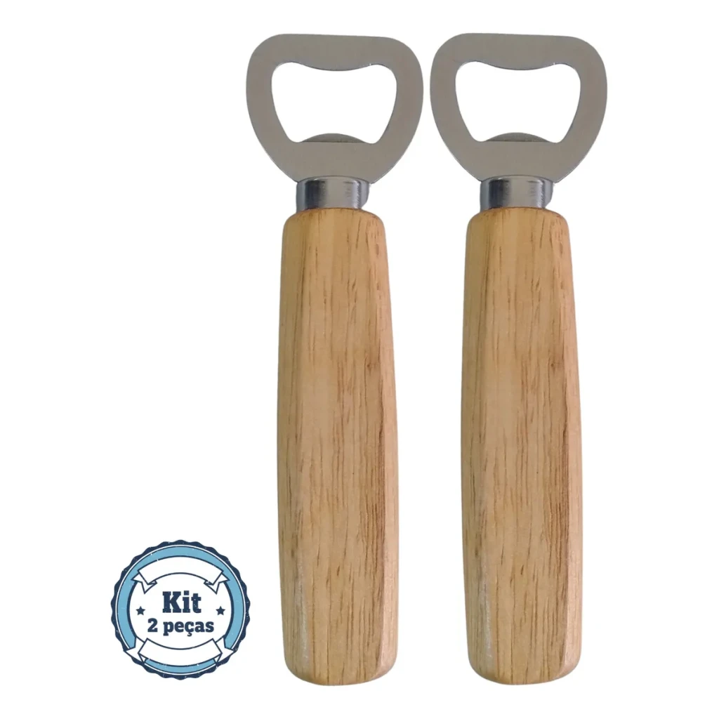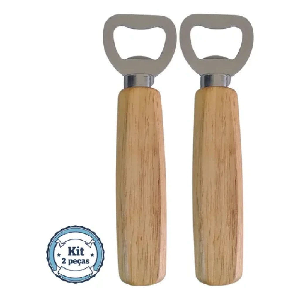 Transforme seu bar com este Kit de Abridores de Garrafa, unindo elegância e funcionalidade. Feitos em aço inox e madeira clara, garantem durabilidade e estilo.