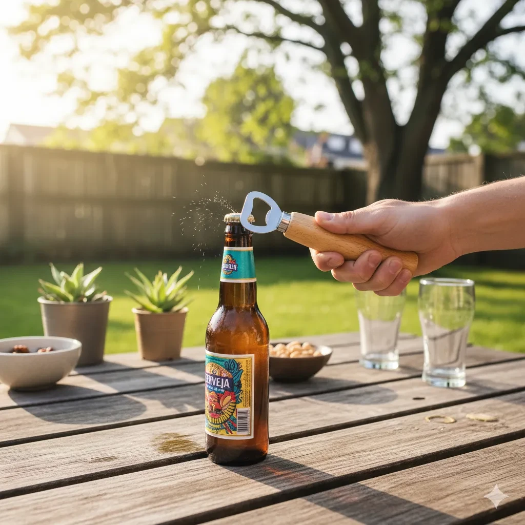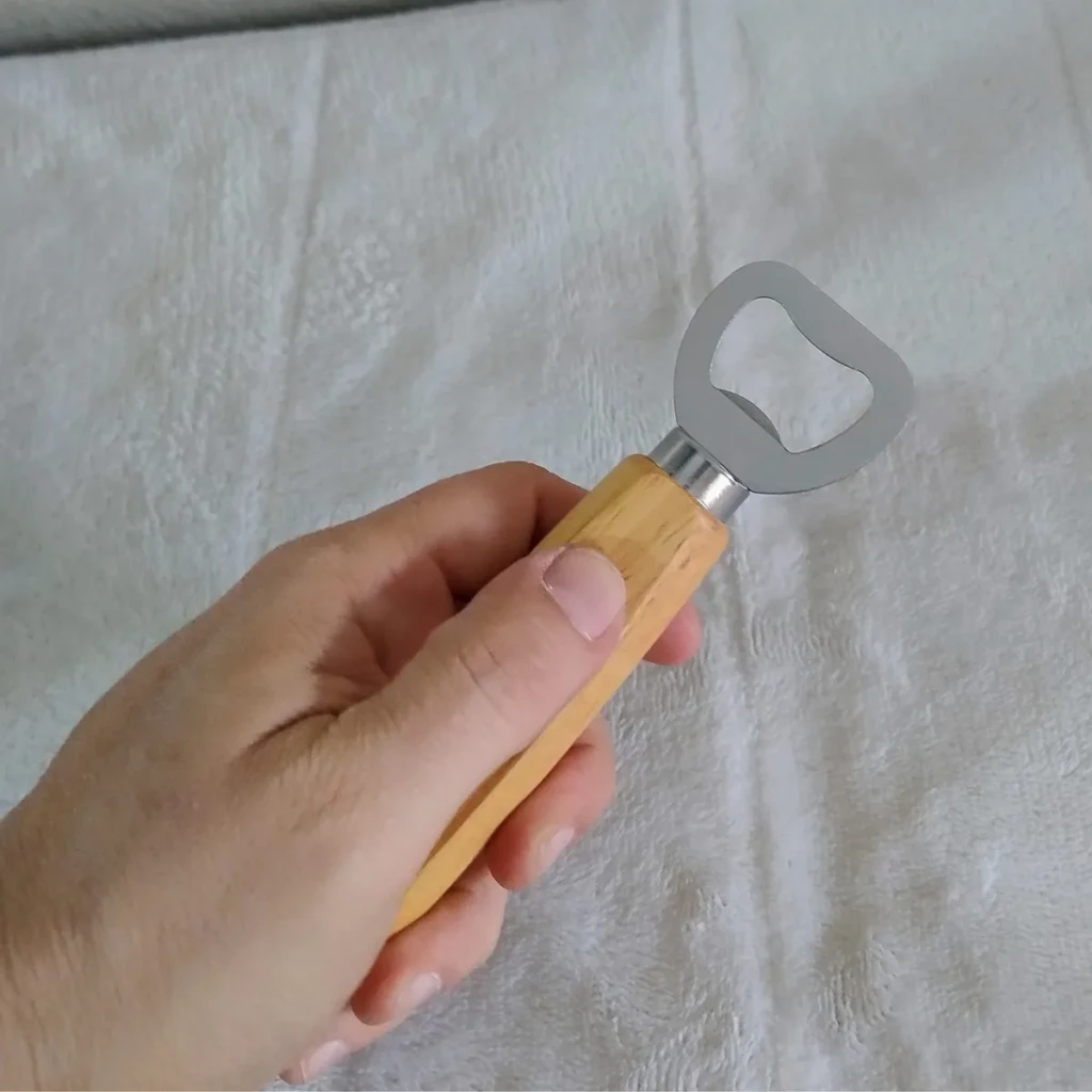 Elegância e Praticidade: Combinando a beleza da madeira clara com a resistência do aço inoxidável, nossos abridores são projetados para facilitar a abertura de garrafas com charme.