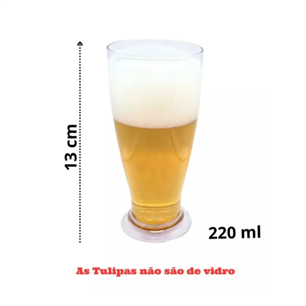 Este kit contém 20 copos tulipa em acrílico, cada um com capacidade de 220ml e altura de 12,8cm. Disponíveis na cor transparente, eles são a escolha ideal para festas, churrascos e confraternizações.