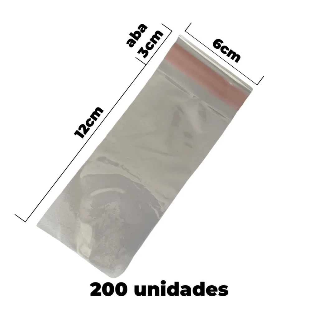 Adquira o Kit com 200 Sacos Plásticos Transparentes em Polipropileno (PP) com aba adesivada, ideal para diversas aplicações. Com medidas de 6×12 cm e espessura de 0,05 mm, oferecem praticidade e proteção para seus produtos.