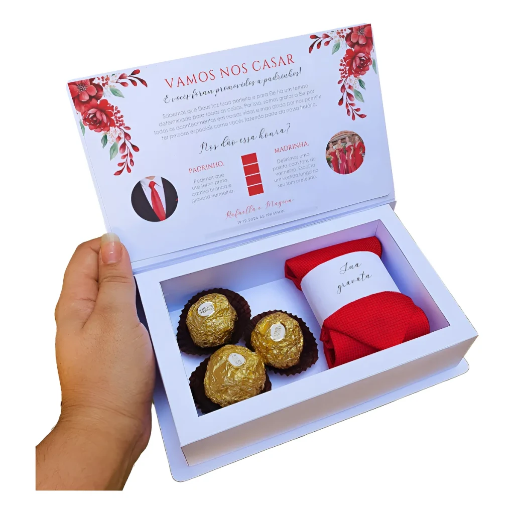Surpreenda seus padrinhos com caixas convites 100% personalizadas, ideais para casamentos e outras ocasiões especiais.