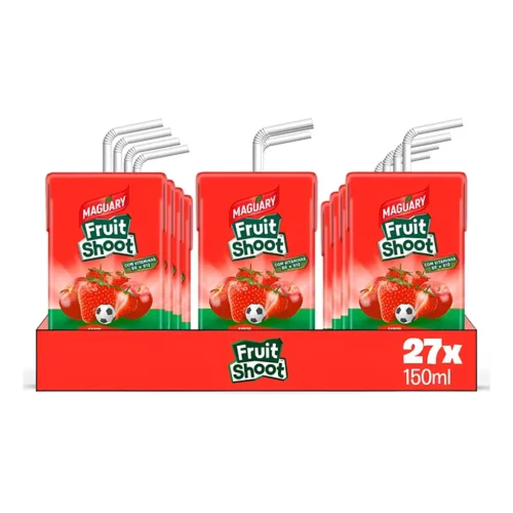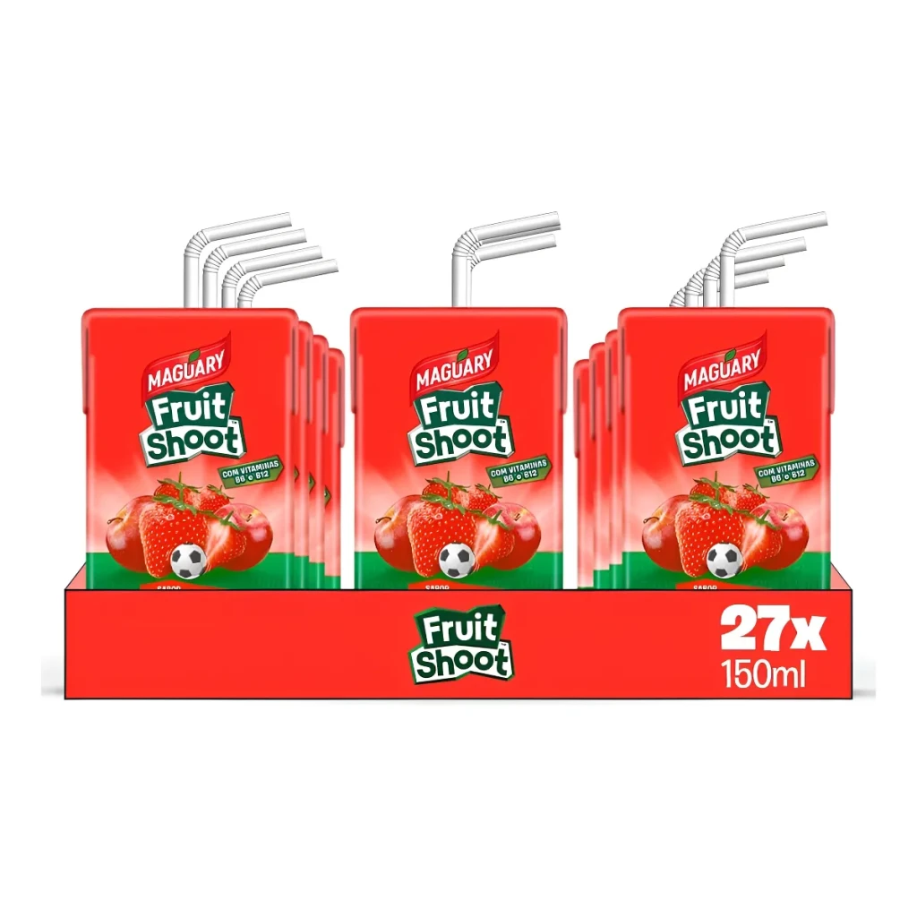 Desfrute do sabor autêntico de morango com o Kit de 27 Sucos Maguary Fruit Shoot, cada unidade com 150ml. Ideal para consumo rápido e prático.