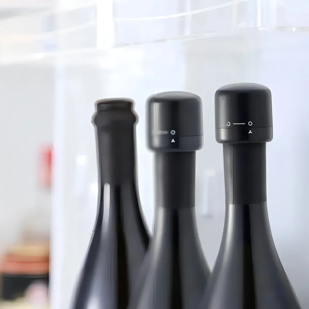 Mantenha o sabor e aroma do seu vinho com as rolhas automáticas de alta qualidade. Fabricadas em ABS e borracha, oferecem um fechamento seguro e eficaz.