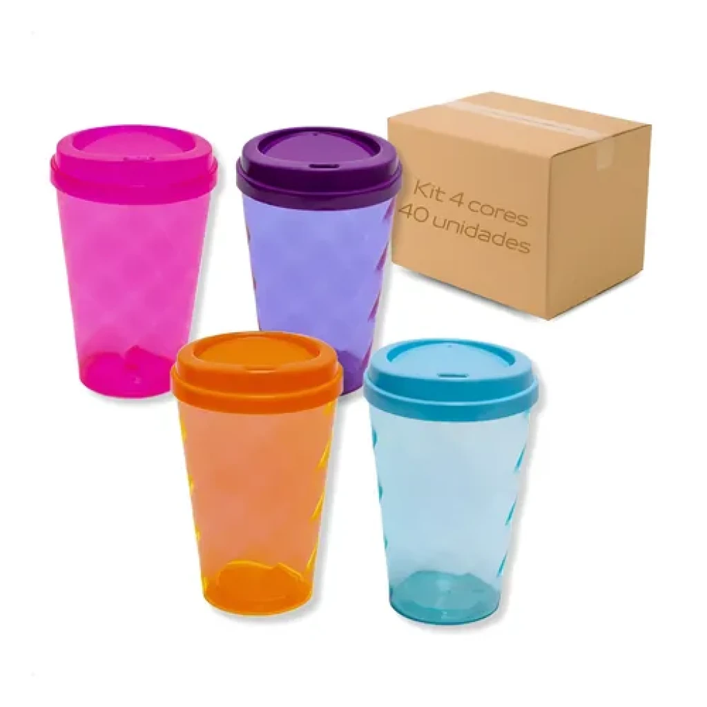 Descubra o Kit com 40 Copos Twister de 300 ml, ideais para festas e eventos. Com tampa bucks, garantem praticidade e estilo.