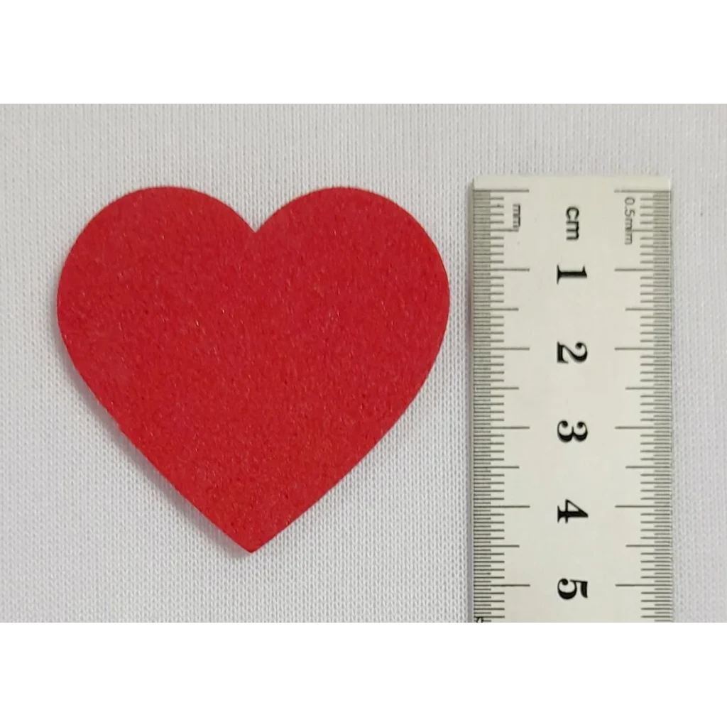 Adquira nosso kit com 50 apliques de coração em EVA liso, ideal para suas criações artesanais. Cada coração mede 5 cm e está disponível na cor vermelha.