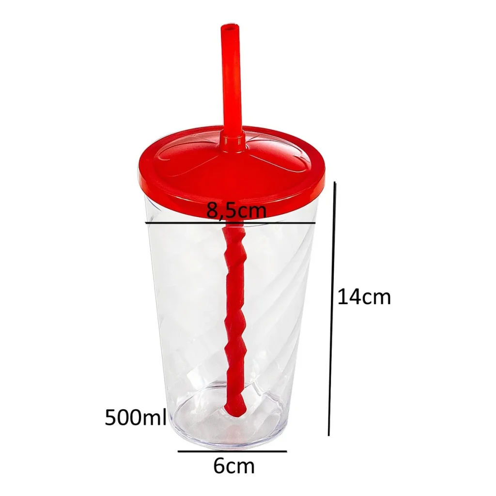 Kit Completo: 20 Copos Twister 500ml + 20 Baldes de Pipoca 1,5l – Vermelho