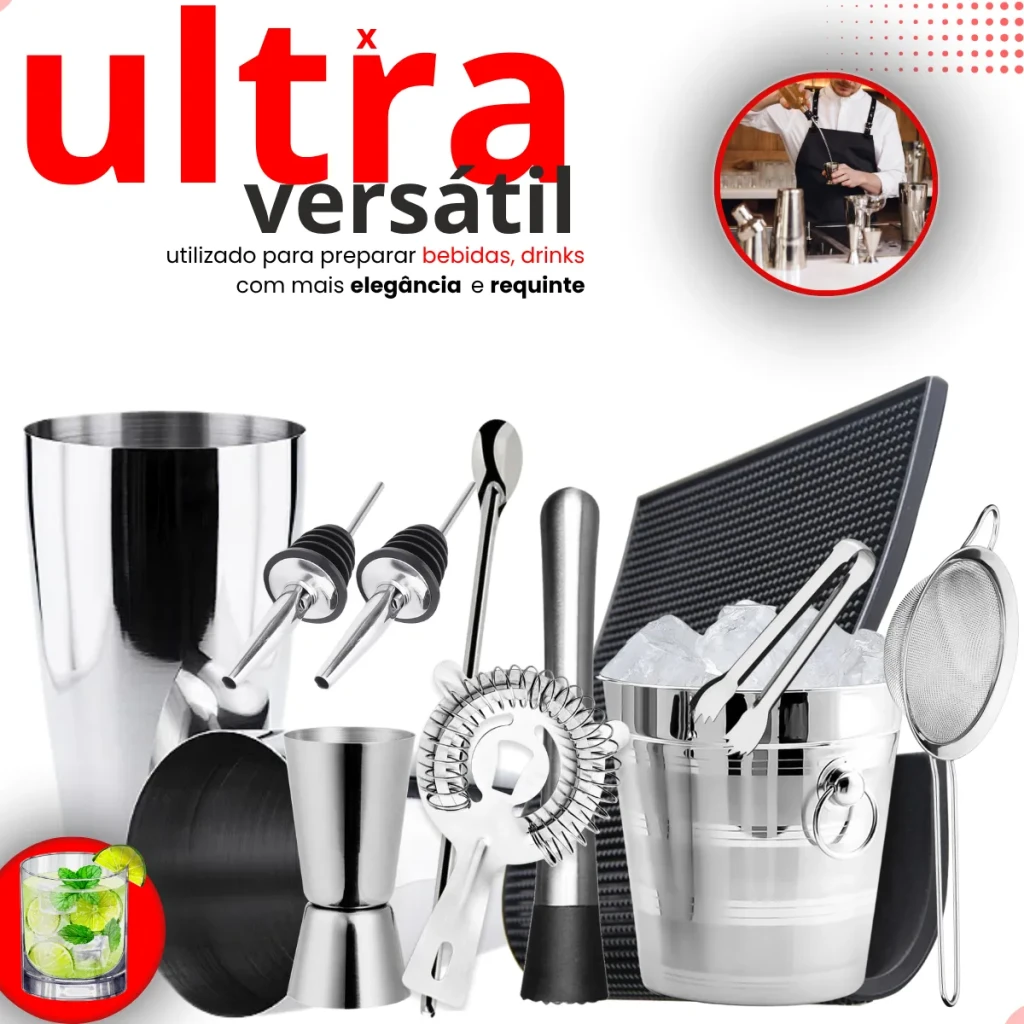 Com o Kit Completo para Barman, você pode criar drinks de alta qualidade sem sair de casa. Este conjunto é a escolha certa para impressionar seus convidados com coquetéis sofisticados.