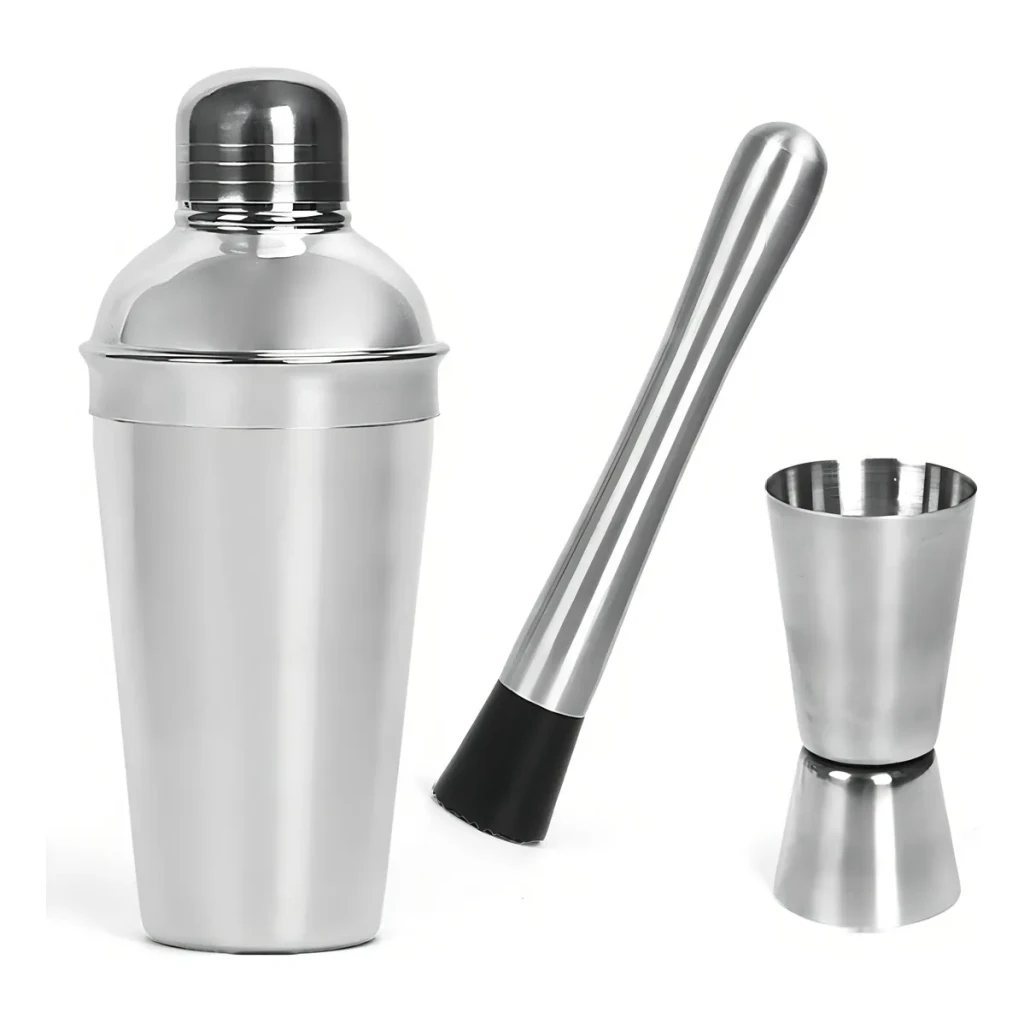 Kit Barman Completo: Coqueteleira, Socador e Dosador