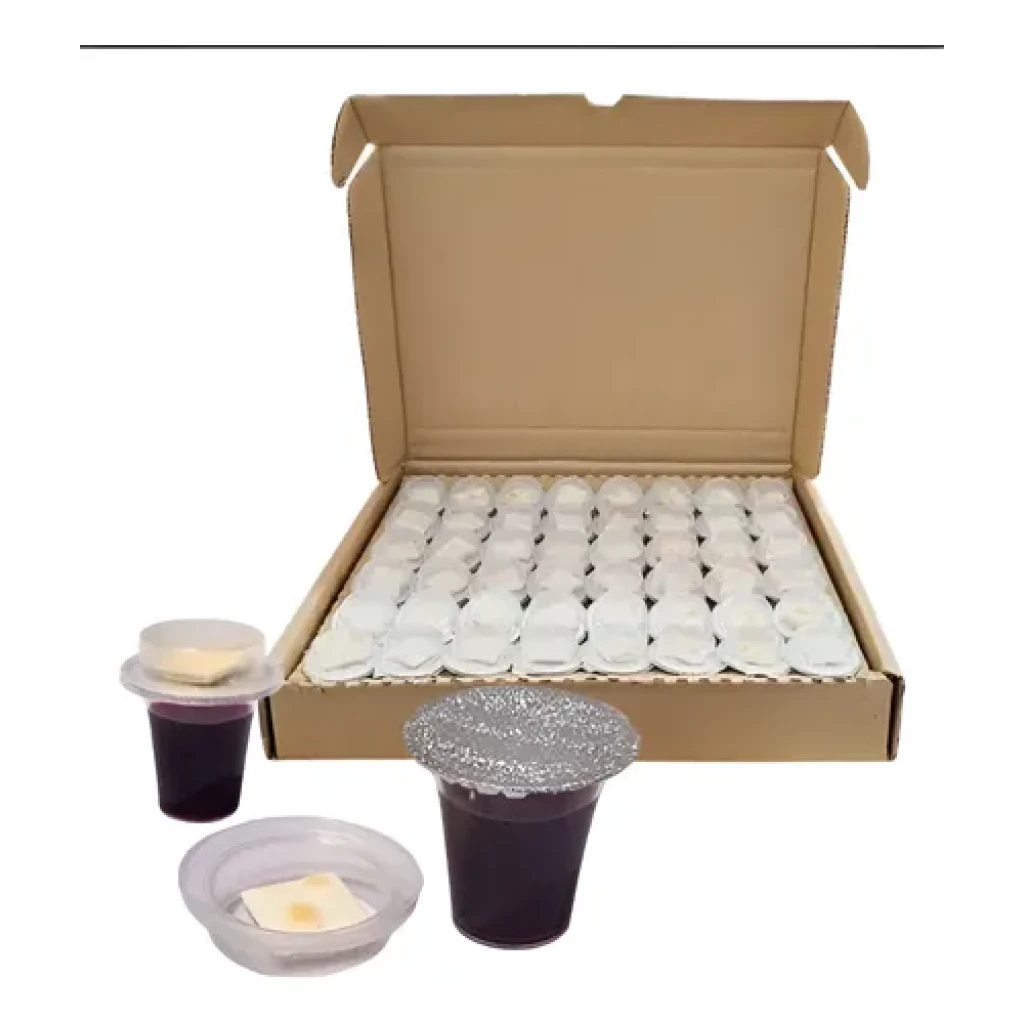 Kit Completo para Santa Ceia: Cálices com Suco de Uva e Pão Ázimo – 48 Unidades