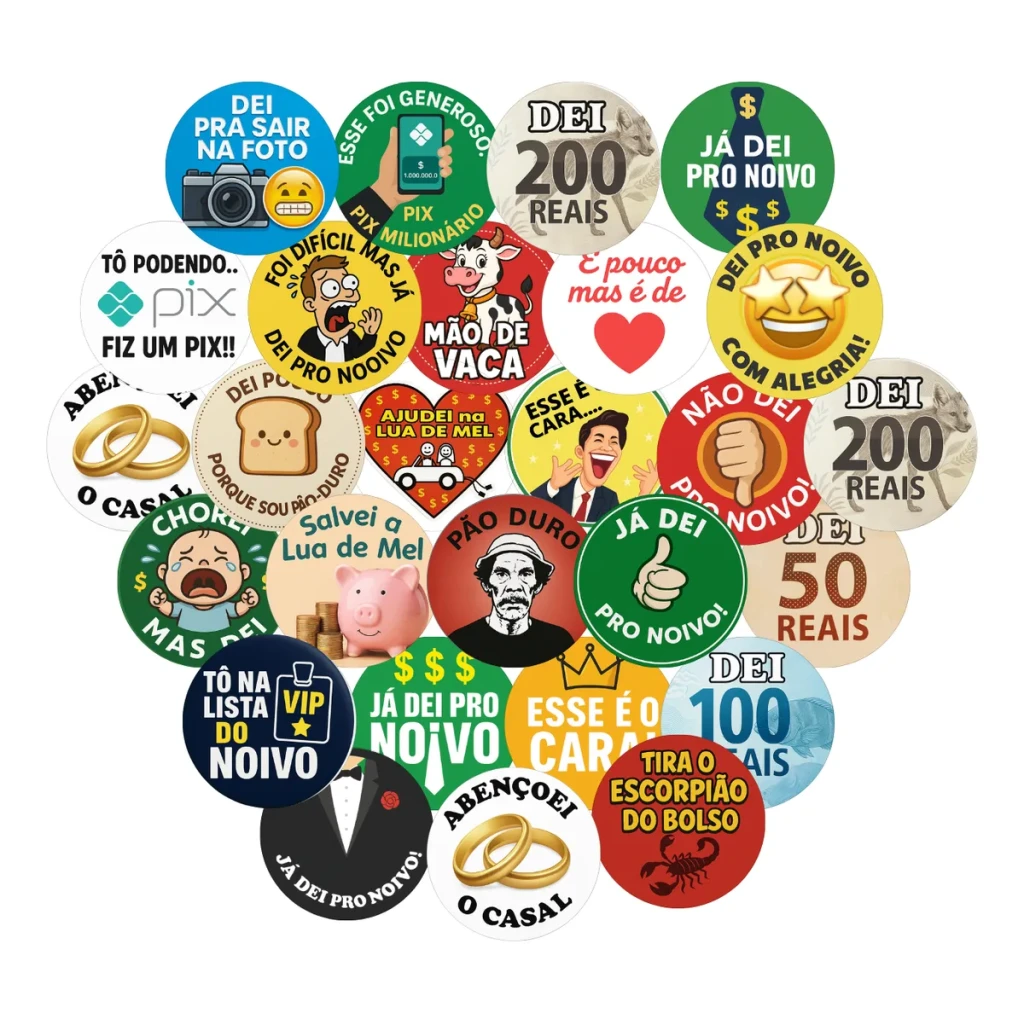 Este kit contém 100 adesivos confeccionados em vinil adesivo de alta durabilidade, projetados para trazer um toque de humor e interatividade aos seus eventos. Cada adesivo possui impressão digital em alta resolução, o que assegura cores vibrantes e excelente qualidade.