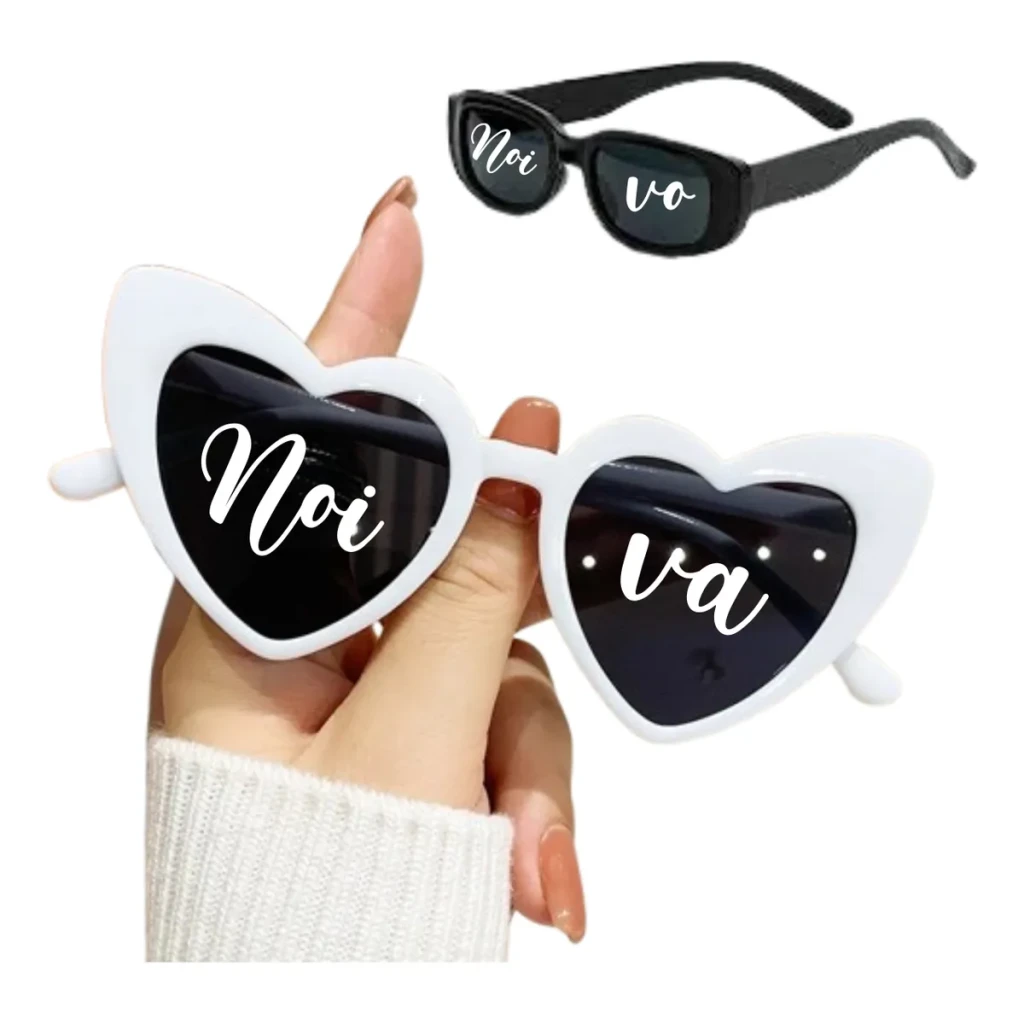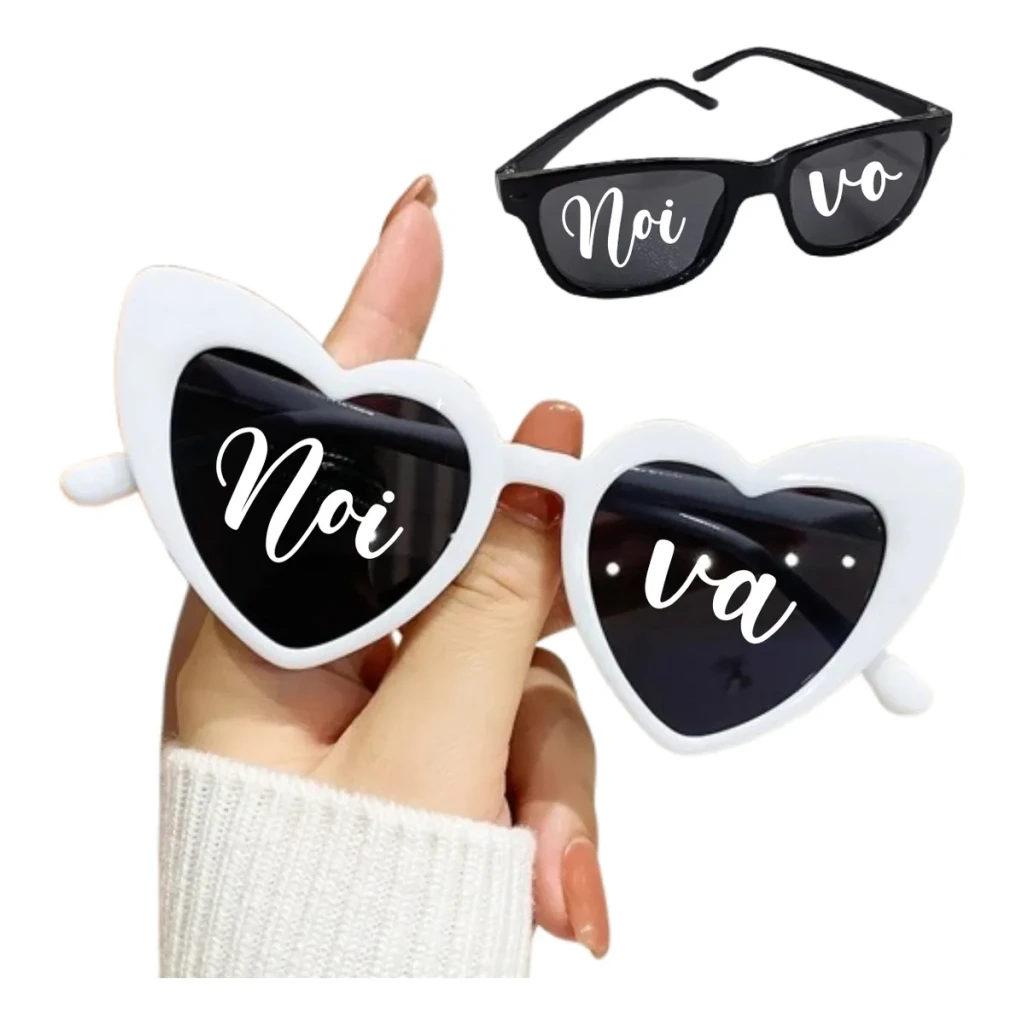Transforme sua festa de casamento com nosso kit de 2 óculos escuros personalizados, perfeitos para noivos e convidados.