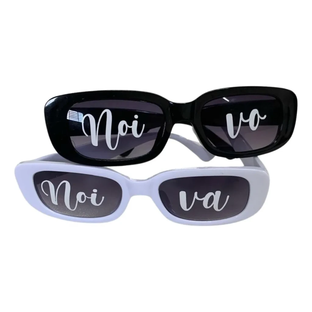 Adicione um toque especial à sua festa com nosso Kit de 2 Óculos personalizados para Casamento e Despedida de Noivo e Noiva. Escolha a cor do vinil para os adesivos, que já vêm aplicados nos óculos.